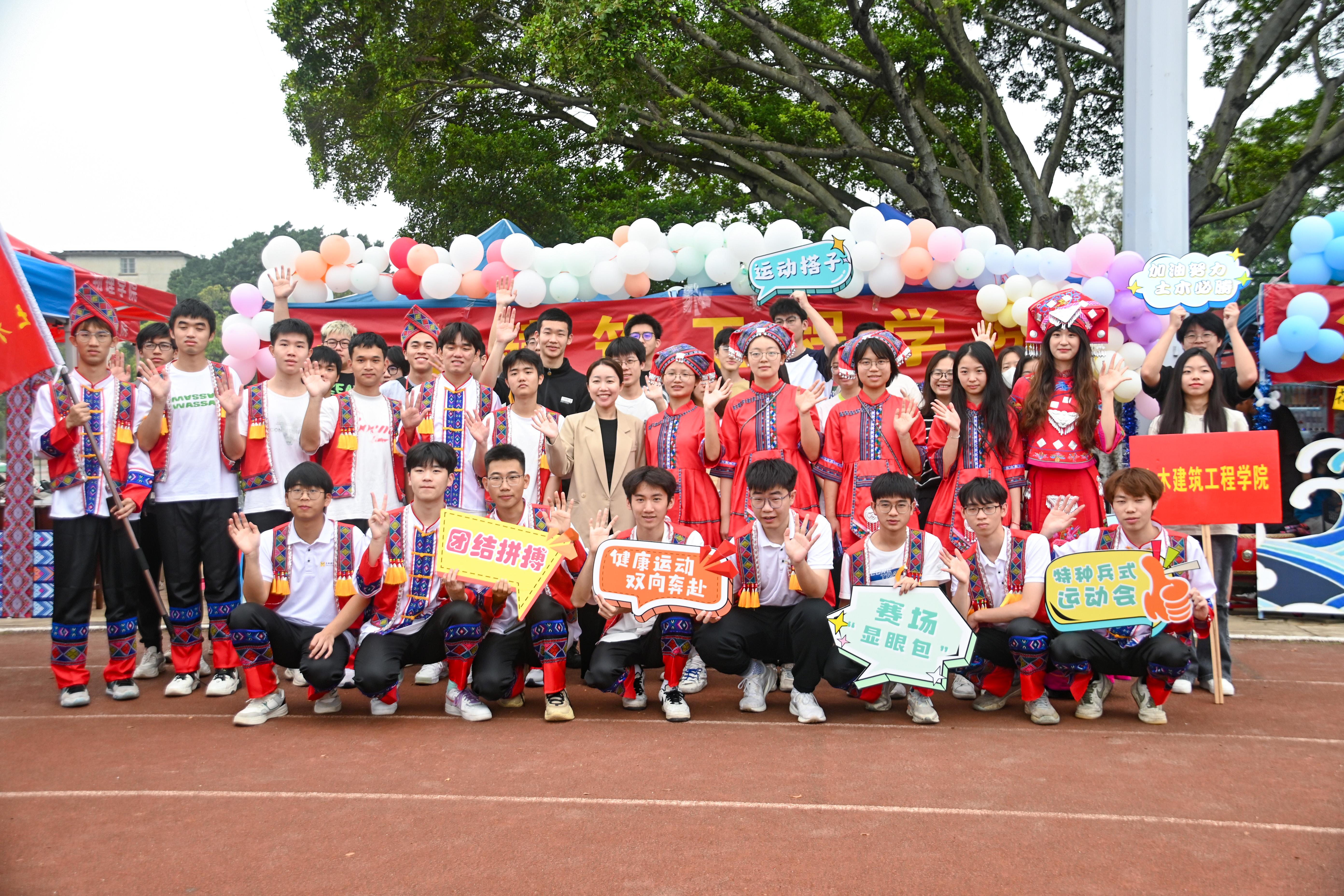 At the opening ceremony, spectacular performances by various colleges quickly ignited the atmosphere. Five hundred students from each college sang folk songs in unison, praising youthful vigor and showcasing ethnic styles. Laughter and songs filled the venue continuously, bringing about a vibrant ethnic atmosphere on campus. Archery, stilts walking, embroidered ball tossing, spinning tops, and other on-site activities were filled with the unique flavors of Guangxi! Teachers and students experienced traditional ethnic competitive activities, admired exquisite ethnic cultural exhibitions, felt the unique charm of ethnic fashion shows, and brought new vitality to "San Yue San".