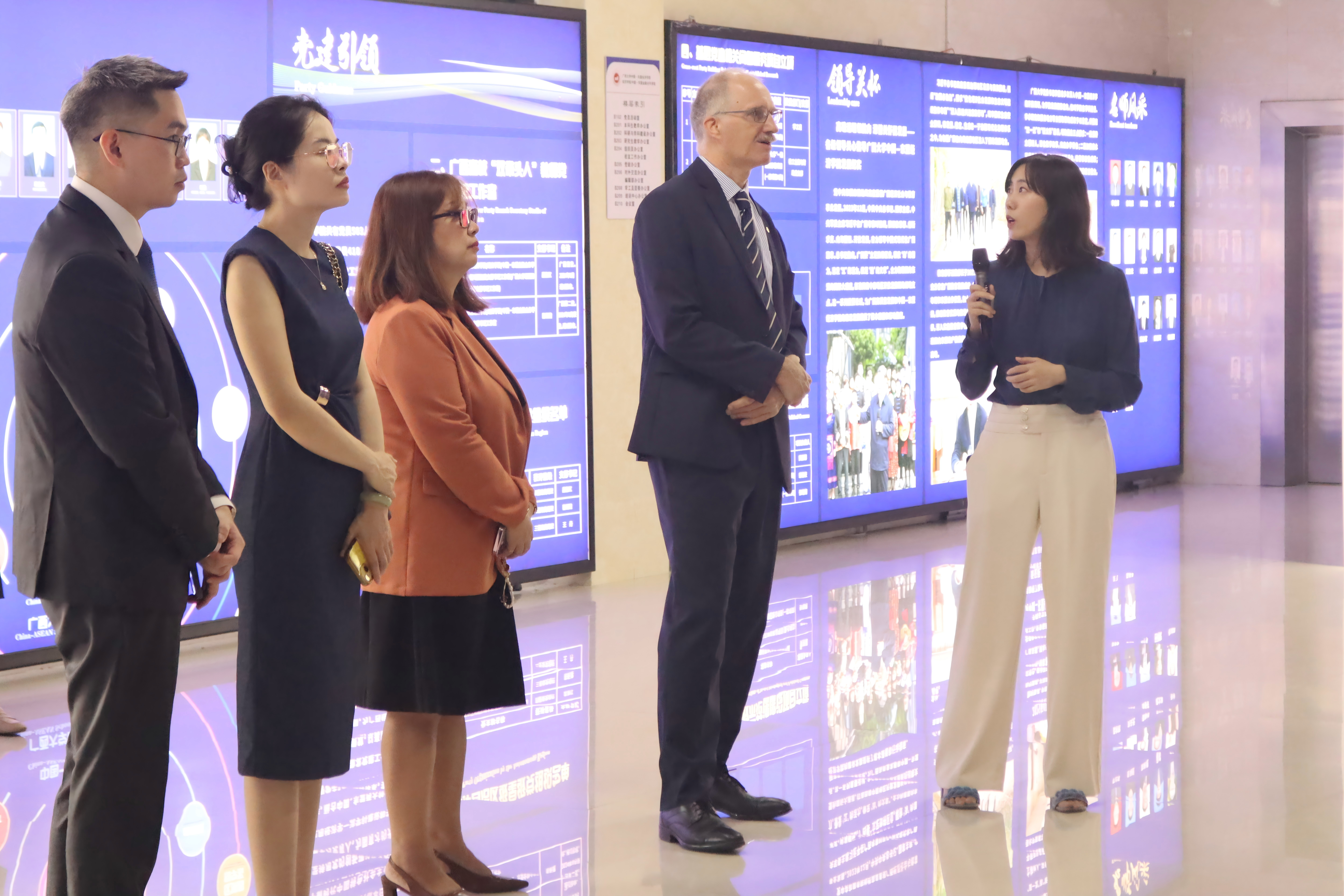 On September 17, 2025, David Fitzpatrick, Provost and CEO at the University of Nottingham Malaysia, led a delegation to visit the China-ASEAN School of Economics. Xia Guoen, Member of the Standing Committee of the Party Committee and Vice President of Guangxi University; Jiang Wei, Member of the Party Committee and Executive Deputy Secretary of China–ASEAN School of Economics, Guangxi University; and Gong Zheng, Vice Dean of China–ASEAN School of Economics, accompanied the visit.