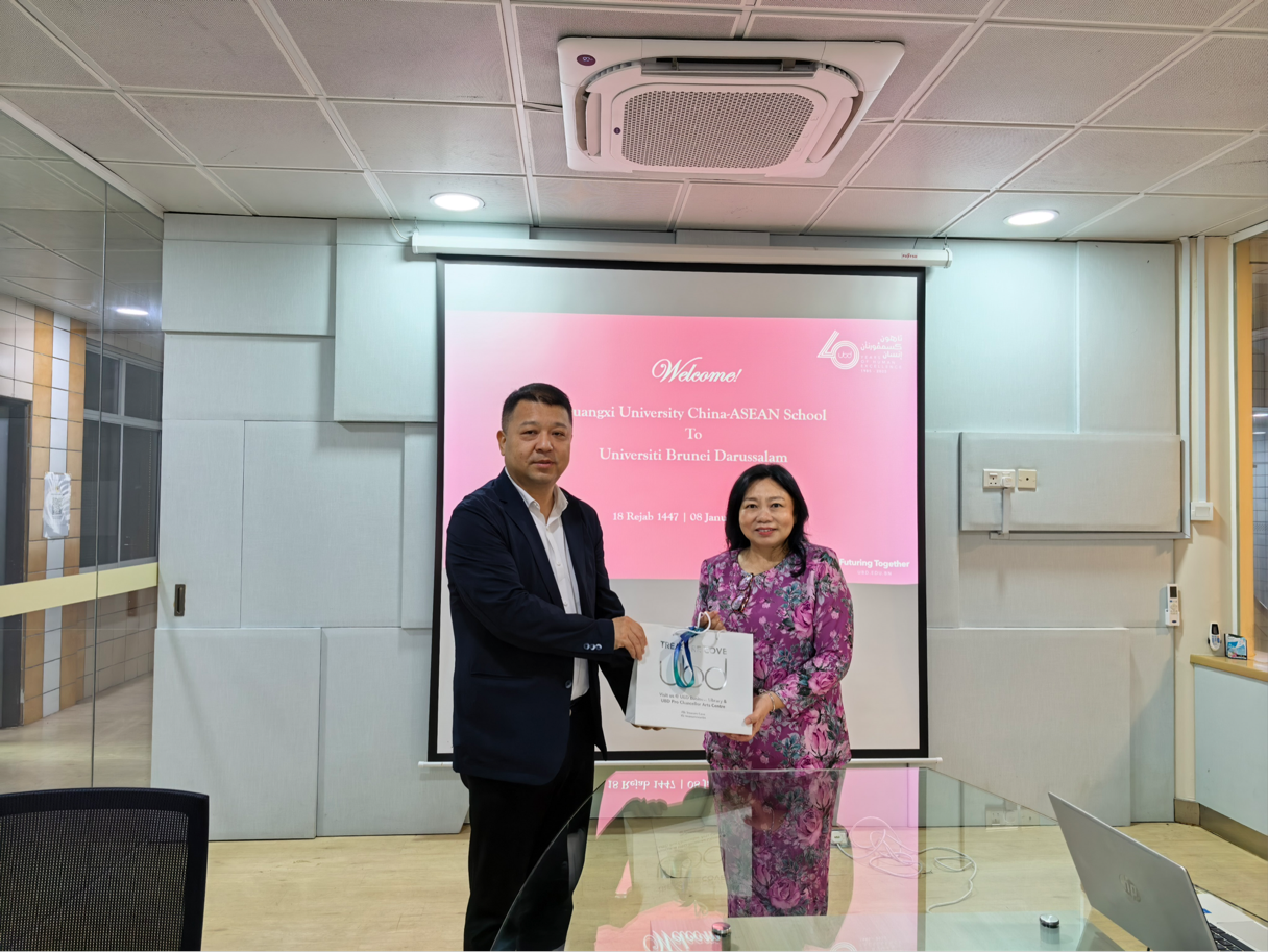 On the morning of January 8, the delegation visited the School of Business and Economics at Universiti Brunei Darussalam, where they held discussions with Dr. Joyce Teo Siew Yean, Vice President of Universiti Brunei Darussalam; Dr. Wardah Azimah Sumardi, Dean of the School of Business and Economics; Dr. Ahmad Lutfi Abdul Razak, Vice Dean for Academic and Student Affairs; and Dr. Siti Fatimahwati Pehin Dato Musa, Vice Dean for Research, Innovation, and Sustainable Development. Mr. Jiang Wei, starting from the international cooperation needs of the college in serving the "China-ASEAN Community with a Shared Future," elaborated on the disciplinary layout of the school in specialized fields such as cross-border trade and regional finance. He stated that this dialogue with Universiti Brunei Darussalam is an important practice for the college to deepen its research on ASEAN countries and precisely align with the needs of its partners. Dean Walda Azimah Sumardi delivered a comprehensive presentation on the academic framework of the University of Brunei's School of Business and Economics, highlighting the advantages of ACCA exemption certification and distinctive student programs like "Global Exploration". Vice Dean Ahmed Lutfi Abdul Razak and Siti Fatimah Wati Pahin Datu Musa respectively elaborated on teaching management, research innovation, and collaborative mechanisms. Addressing shared concerns including joint student training, collaborative research initiatives, and scholar exchange programs, both sides engaged in in-depth discussions. They reached positive consensus on advancing short-term academic exchange programs, initiating joint research in logistics and supply chain management as well as digital economy, and establishing platforms for scholar visits and academic symposiums. Both institutions emphasized that deepening practical cooperation would help cultivate ASEAN-oriented international talents, produce high-quality regional research outcomes, and inject new momentum into enhancing Chinese language education collaboration and cultural exchanges.
