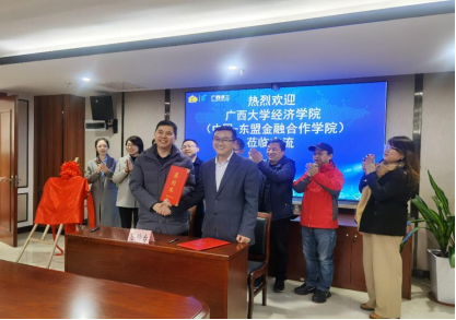 陆善勇书记对广西建工集团国际公司参与人才培养表示感谢,并对“实践教育基地”正式揭牌表示祝贺。他简要介绍了beat365手机版官网入口经济学院、中国-东盟金融合作学院基本概况、发展历史、师资力量、教学成果、学科设置等,表达了校企合作的信心和期望。他指出,希望双方就共同研究国际商务、国际经济与贸易等内容,形成校企合作发展动力,密切合作,为培育人才提供平台支持,希望广西建工集团国际有限公司可以走进经济学院课堂,促进校企双方高质量发展。学术院长李光辉表示在当前RCEP实施的重要机遇下,与广西建工集团国际有限公司签署校企合作协议对于经济学院“应用经济学”一流学科与“国际经济与贸易”国家一流专业建设的发展尤为重要。