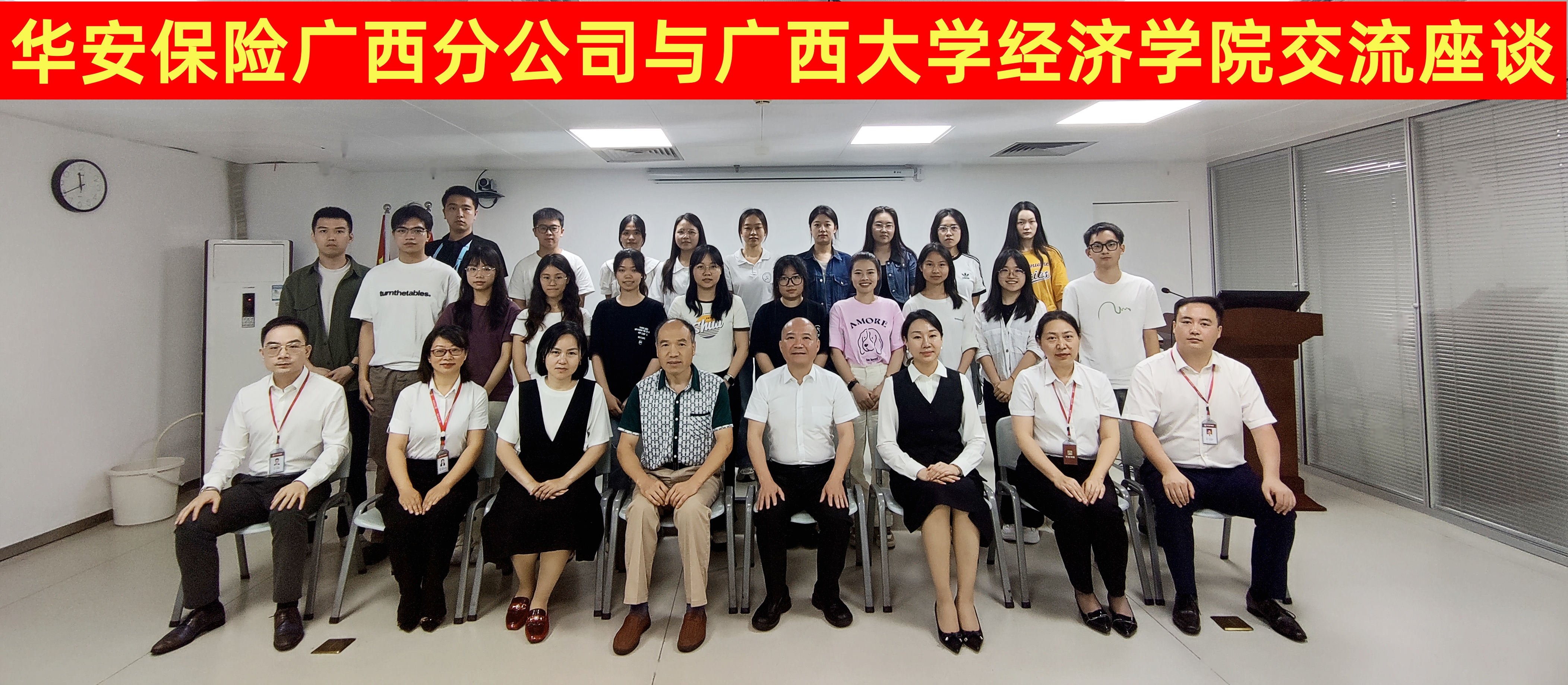 4月23日,beat365手机版官网入口经济学院/中国—东盟金融合作学院唐金成教授、莫国莉副教授和2023级保险专硕全体同学一行到华安财险广西分公司交流学习。华安财险广西分公司总经理张华、副总经理冯艳、人力资源部经理王吕云、人身险部经理沈海林、创新业务部经理李娜、客户服务暨消费者权益保护部经理助理李旭出席本次交流会。