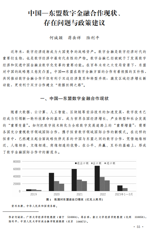 日前,我院何诚颖教授、浙江大学经济学院蒋岳祥教授、中国人民大学财政金融学院陆利平副教授的文章在《中国—东盟数字金融合作现状、 存在问题与政策建议》在《中国社会科学(内部文稿)》发表。