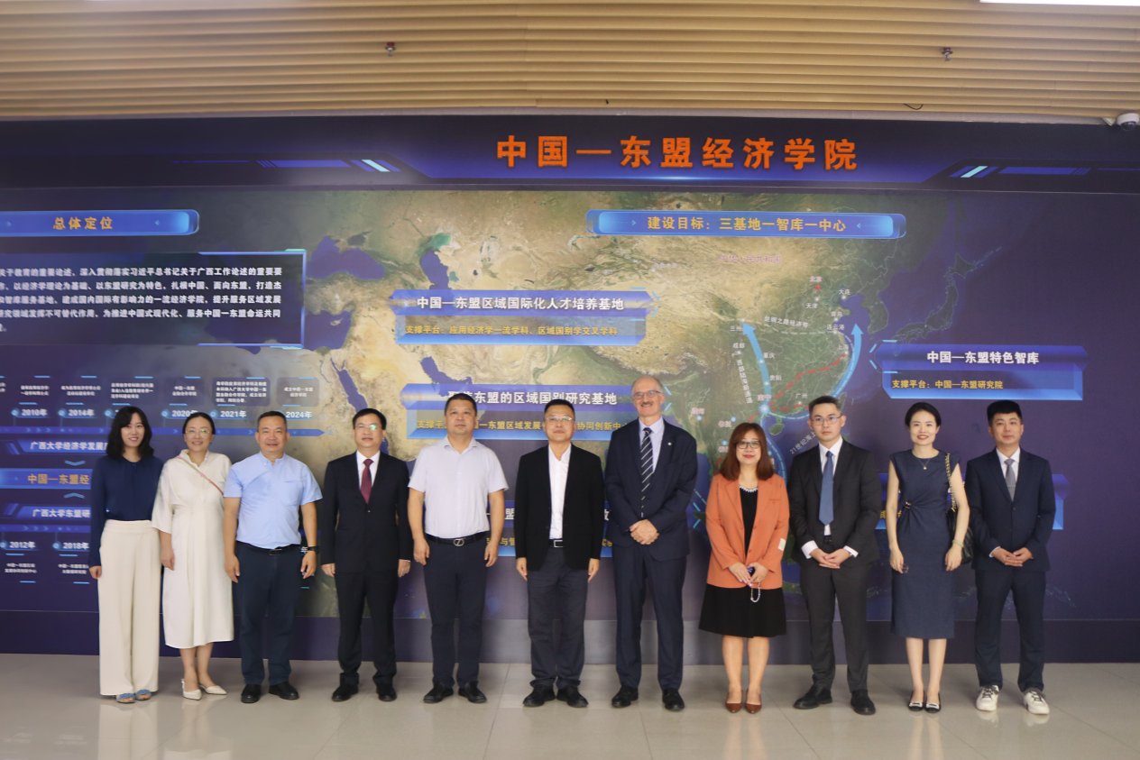 2025年9月17日,英国诺丁汉大学副校长、诺丁汉大学马来西亚分校校长大卫·菲茨帕特里克(David FitzPatrick)一行到我院参观交流,校党委常委、副校长,院党委委员、书记(兼)夏国恩,院党委委员、常务副书记姜玮和副院长公正陪同参观。