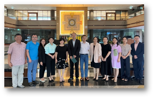 2023年7月26日,beat365手机版官网入口经济学院副院长谭春枝、院长助理刘骞文、樊凡教授、刘主光教授、韦倩青教授、韦苏倢副教授以及黄芸老师一行7人与清迈大学艺术与技术信息学院教师团队一起走访泰国银行清迈区域管理中心,并与该中心负责人展开座谈交流。