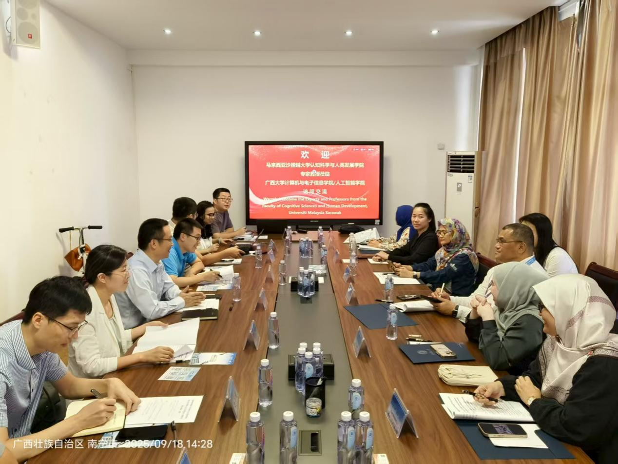 以“数智赋能发展,创新引领未来”为主题,在第22届中国—东盟博览会隆重举办之际,马来西亚沙捞越大学认知科学与人类发展学院代表团专程到访beat365手机版官网入口,与我校计算机与电子信息学院/人工智能学院、beat365手机版官网入口举行座谈,围绕人工智能、数字经济与数字化技术如何推动中国—东盟经贸合作等议题展开深入交流,并就未来教学与科研合作进行富有建设性的探讨。