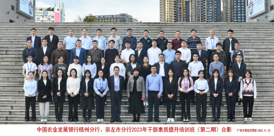 本次中国农业发展银行梧州分行、崇左市分行2023年干部素质提升培训班(第二期)的成功举办,期望学员们能够理论结合实践,在梧州、崇左地区农村金融领域发挥积极作用,为全国减贫与发展贡献力量。
