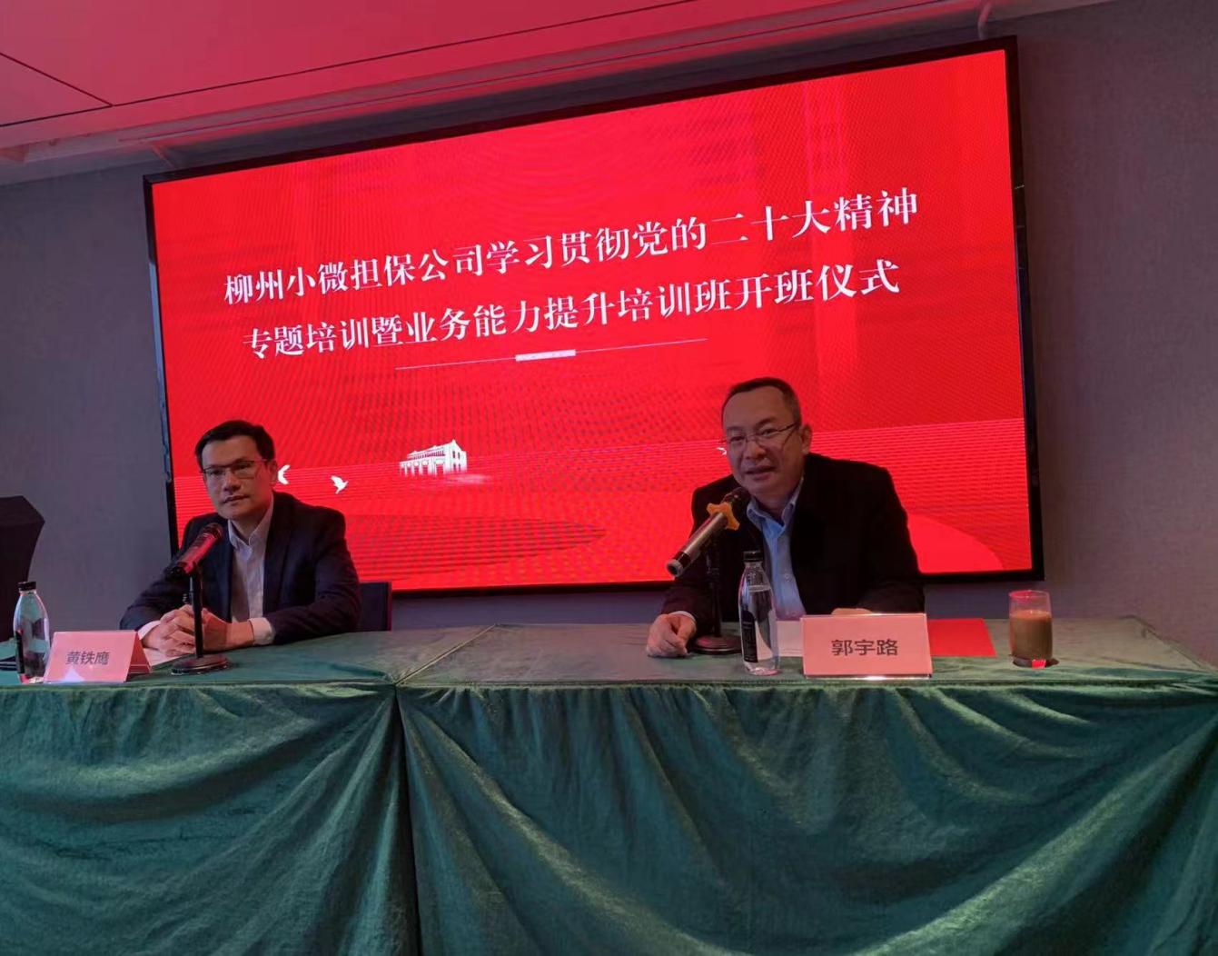 1月5日,柳州市小微企业融资担保有限公司在柳州举办以“学习贯彻党的二十大精神暨业务能力提升”为主题的专题培训,该培训是我院2023年首个面向广西地方金融机构管理人员的金融业务能力培训班。柳州市小微企业融资担保有限公司黄铁鹰董事长、学院党委副书记、副院长郭宇路出席开班仪式并致辞。
