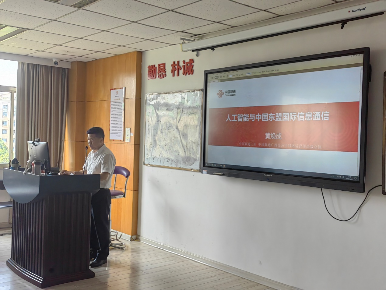 4月25日,我院国际经济与贸易系在《电子商务理论与实践》课程中创新开展校企联合教学实践,邀请中国联通广西分公司网络运营部高级总监黄焕成走进本科课堂,以“行业专家+场景教学”模式,为学生带来《人工智能与中国东盟国际信息通信》专题授课。