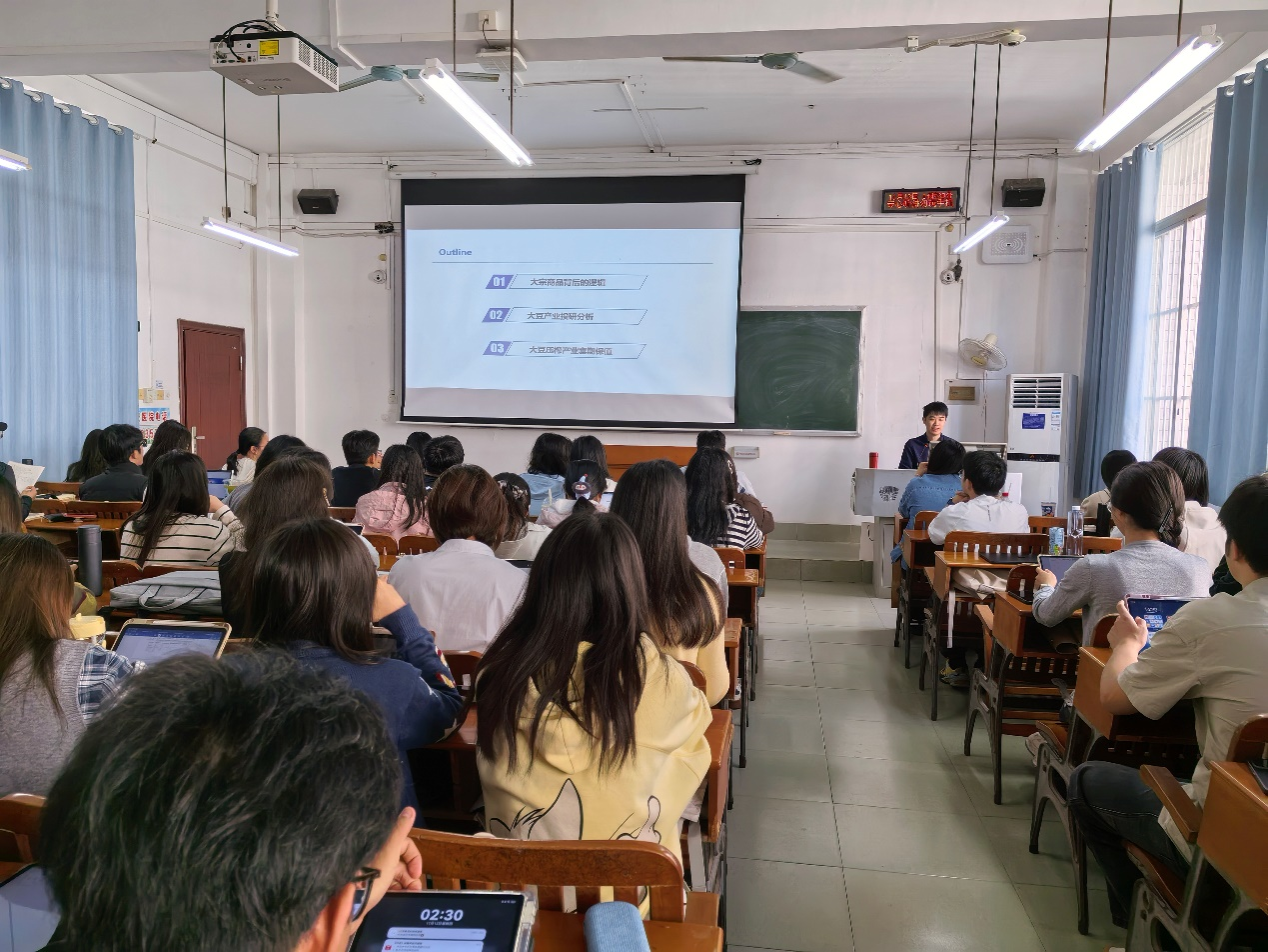 为帮助学子搭建大宗商品研究框架,深化对产业实操与风险管理的认知,2025年11月13日下午,beat365手机版官网入口经济学院特邀广西北港油脂有限公司研究员曾辰奕为全体2025级金融专硕同学开展以“大宗商品行业研究及大豆压榨产业套期保值”为主题的讲座。