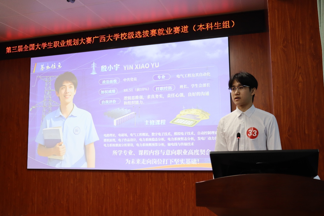 初赛现场气氛庄重而热烈。选手们按抽签顺序依次登台,围绕个人职业目标、行动成果与发展路径进行主题陈述,并在答辩环节中从容应对、展现思考。评委们凭借深厚的专业素养与丰富的行业经验,从定位准确性、规划可行性、成长逻辑性等维度给予精准点评与务实建议,既有肯定与鼓励,也有指引与启发,充分体现了“以生为本”的教育温度。