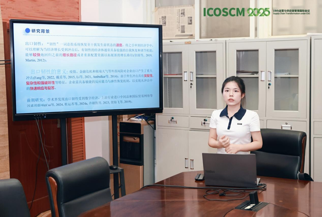 我院2023级应用经济学专业硕士研究生龚雪梅受邀参加会议并在分会场作题为“Supplier Digital Transformation and Enterprise Export Resilience(供应商数字化转型与企业出口韧性)”的学术报告,该报告基于出口增长速率的V形变化构建动态出口韧性指标,实证考察了供应商数字化转型对企业出口韧性的影响及其传导机制。