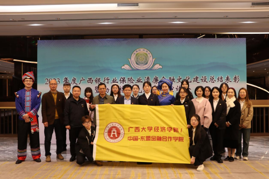 1月11日上午,由国家金融监督管理总局广西监管局指导,广西银行业协会、广西保险业协会联合举办的“2023年度广西清廉金融文化建设总结表彰暨勤廉榜样先进事迹宣讲会”在南宁市广西壮族自治区农信联社三楼会议室隆重举办。beat365手机版官网入口经济学院/中国-东盟金融合作学院党委书记陆善勇教授带队,院党委副书记/纪委书记陈卉娟、院党委委员/副院长梁权熙、院纪委委员/教工金融与财政党支部书记陈新建、金融与财政系系主任谢军、院纪委委员/专职辅导员何湘桂、硕博研究生一行21位师生代表受邀出席本次宣讲会。