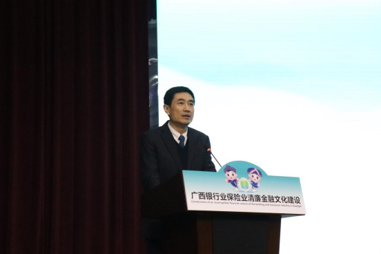 最后,国家金融监督管理总局广西监管局党委书记、局长任庆华讲话。任庆华同志回顾总结过去三年清廉金融文化建设广西实践,围绕党建引领、以人为本、金融反腐、文化传承深刻阐释四点规律性认识,号召金融从业人员深入学习习近平总书记关于金融工作和廉洁文化建设的重要论述,主动以受到表彰的单位和个人为榜样,牢固树立“崇廉尚洁、以清为美、以廉为荣”的价值取向,并对新征程上进一步推进“八桂廉韵 银保清风”走深走实提出希望,要求各银行保险机构要进一步扛起清廉金融文化建设主体责任,进一步增进联动,在清廉广西建设大局中展现金融特色,持续提升“八桂廉韵 银保清风”品牌效应与社会影响力,谱写新征程上“八桂廉韵 银保清风”新华章。
