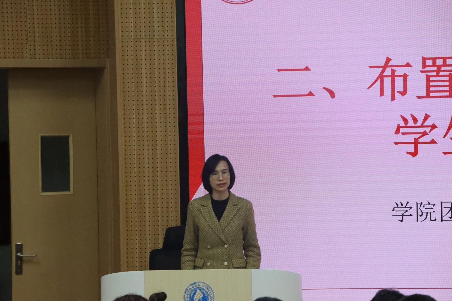 最后,学院党委副书记陈卉娟老师进行会议总结。陈副书记概括总结了我院在2023年取得的喜人工作成绩,包括学科排名大幅上升、毕业生就业升学率稳中有进、学科竞赛斩获多项全国荣誉等。她肯定了学生干部在学院高质量发展过程中发挥的积极作用,同时也对大家提出以下期望:一是利用寒假坚持专业学习,认真复习准备考研、参加学科竞赛、备考专业资格证书等;二是根据自身情况参与实践活动,如专业实习、劳动锻炼、分担家务,毕业生也可以返乡找工作;三是注意保持清廉自律,特别过年期间自己和家人都要杜绝铺张浪费,以及共同维护清朗网络空间;四是牢固树立纪律意识和安全意识,诚信考试,高高兴兴回家过年,平平安安开学返校。