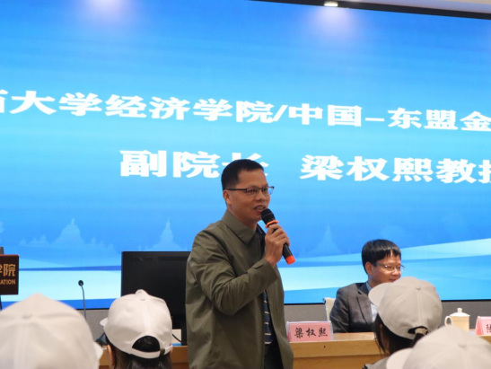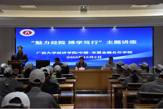 第三站,隆安中学师生们来到我院参加“魅力经院 博学笃行”主题讲座。学院党委书记陆善勇教授介绍了学校和学院概况,并对隆安中学的同学们提出了殷切希望,希望同学们未来能成长为支持广西地方经济社会发展的有用之才;副院长梁权熙教授在指出我院实力强劲的同时,为同学们介绍了经济学类专业在当今形势下的重要性、就业前景以及未来的发展潜力;接着,院长助理陈伟宏博士从自身经历出发,向同学们讲解如何兼顾专业学习与综合能力提升;最后,隆安中学朱勇付老师对我院的活动安排表示感谢,通过这次研学,同学们对大学生活和学习有了一定了解,希望同学们能更好地规划未来的学习。
