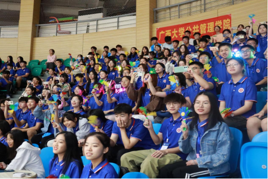 (学院观众为啦啦操队员加油助威)