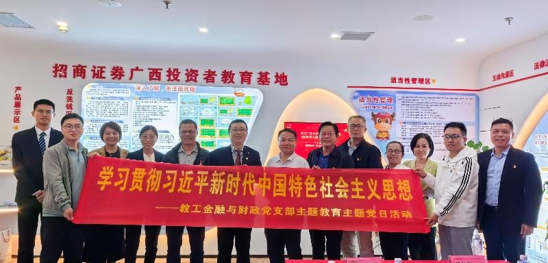 梁权熙副院长和支部书记陈新建带领的9人党员队伍,前往招商证券桂林营业部调研并开展支部联建活动。桂林营业部总经理周毅热情接待了来访的党员教师代表,向党员教师们详细介绍了招商证券广西投资者教育基地及招商证券桂林营业部的发展情况。调研过程中,双方就beat365手机版官网入口经济学院与招商证券广西公司进一步深化合作、开展党建+业务的深度融合、开展资本市场相关课题研究、金融人才创新培养与实习就业等方面开展了深度的交流,并达成了多个初步合作意向。在支部联建活动中,支部书记陈新建详细介绍了教工金融与财政党支部的建设情况和通过学习贯彻习近平新时代中国特色社会主义思想主题教育后所取得一系列成果,招商证券桂林营业部总经理、支部书记周毅围绕红色金融史领学了习近平新时代中国特色社会主义思想关于资本市场发展和金融支持实体经济的系列论述和思想理论。