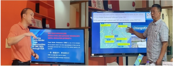 与会双方围绕中泰两国近年的经济发展,尤其是在双边的国际贸易、物流与供应链、电子商务等领域进行了主题发言和学术交流。清迈大学Panthamit教授和Pornchai副教授分别作了泰国经贸发展现状和发展趋势以及泰国土地政策法规对经济发展影响的主题发言。我院教师在中泰两国经贸、自由贸易区建设、边境贸易发展、国际物流和国际电子商务体系建设进行了主题发言。与会代表各抒己见,并进行了深入且广泛的学术交流。