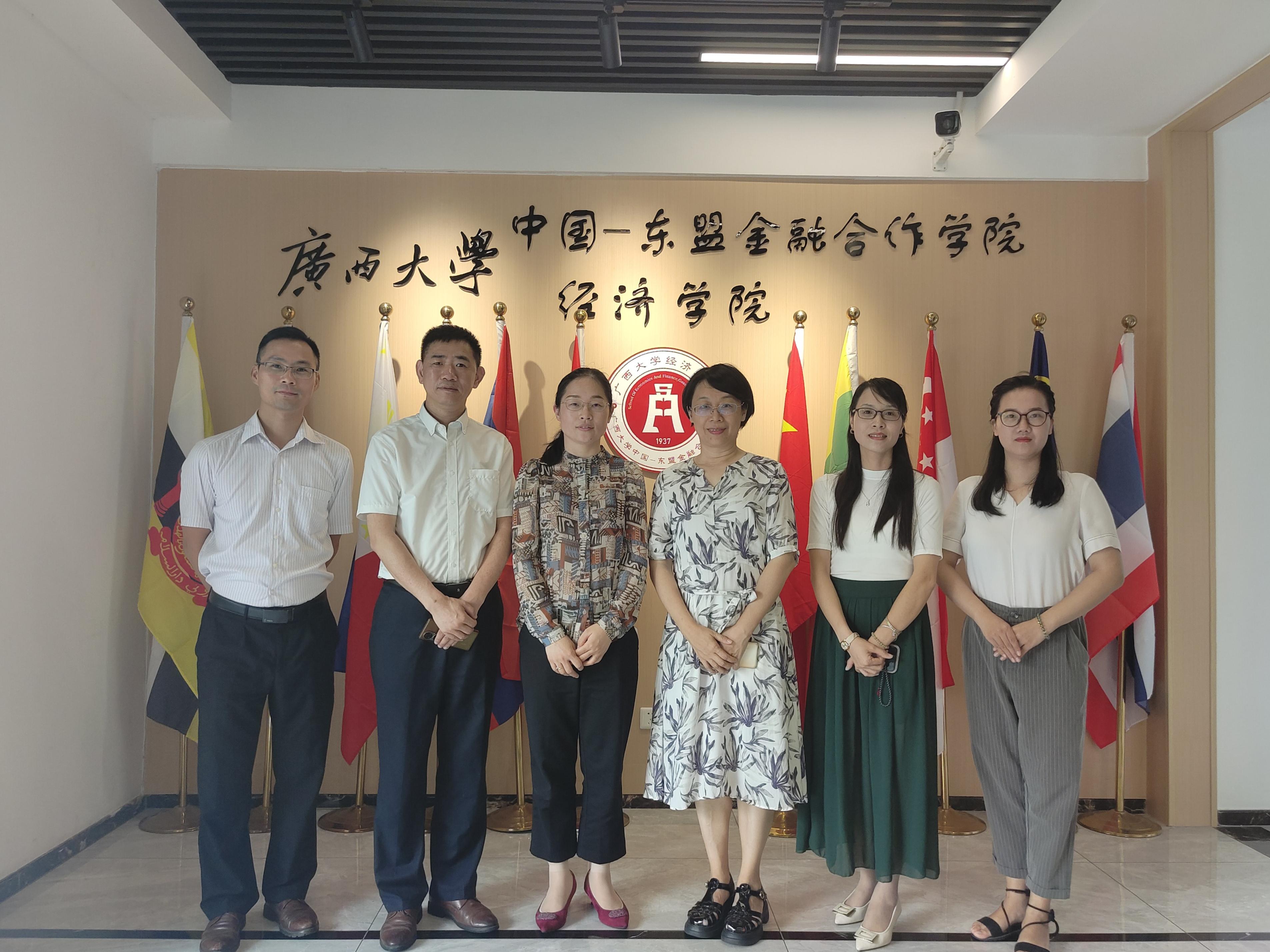 7 月 11 日,梧州市工信局副局长甘露、广西欧神诺陶瓷副总经理、梧州工商联副主席殷晓春一行来院交流。学院办公室副主任刘莉莉、培训中心凌雨晴、黄瑜与甘露一行亲切座谈。刘莉莉对本次甘露一行来访表示热烈欢迎,并介绍了学院的发展历程、学科特色、人才培养等情况。殷晓春把广西欧神诺陶瓷产品特点、科研能力、招聘需求等情况做了交流。