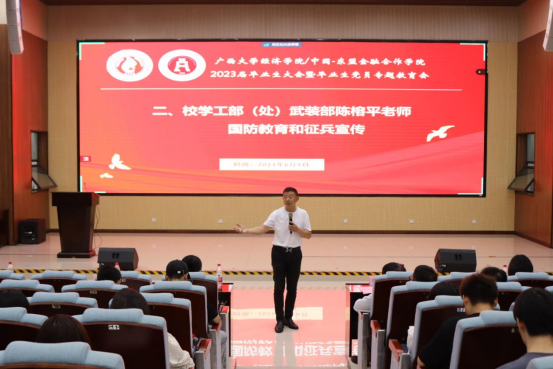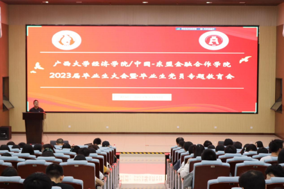 6月9日上午,beat365手机版官网入口经济学院/中国-东盟金融合作学院2023届毕业生大会暨毕业生党员专题教育会在资源环境与材料学院123报告厅召开。学院党委书记陆善勇,党委副书记/纪委书记陈卉娟,学工部(处)、武装部陈榕平,学院团委书记王海希,团委副书记蒙江勇,辅导员蒙昀、覃晓阳、曾宪友、何湘桂出席本次会议,2023届全体毕业生与会。