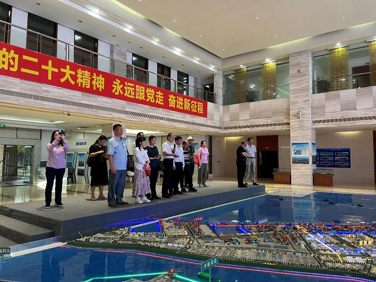 6月8日下午,调研组前往中国(广西)自由贸易试验区钦州港片区考察。自贸区钦州港片区贸易与物流发展局林纲局长向调研组介绍了中国(广西)自贸区钦州港片区整体规划情况,随后陪同调研组考察了广西中伟新能源科技有限公司、北部湾港智慧港口创新中心、广西华谊能源化工有限公司、见炬科技等企业。