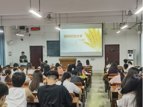 经济192班徐震同学首先分享他的保研经验,向同学们讲解了科研型、竞赛型和社会实践型三种保研途径,同时他强调大学生差异化的成长路径是由各自的兴趣爱好作为基础,大家需要通过不断的实践探索来确定自己的未来规划。