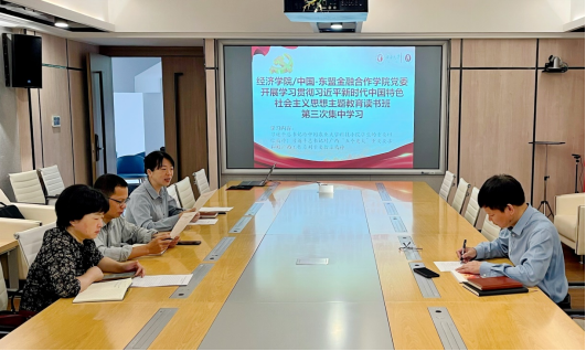 5月9日上午,经济学院/中国-东盟金融合作学院党委班子在102会议室开展主题教育读书班第三次集中学习,就习近平总书记给中国农业大学科技小院学生的重要回信精神、习近平总书记对广西“五个更大”重要要求和对广西工作系列重要指示精神等内容展开学习研讨。beat365手机版官网入口党委委员、学院党委书记陆善勇主持学习会并讲话。