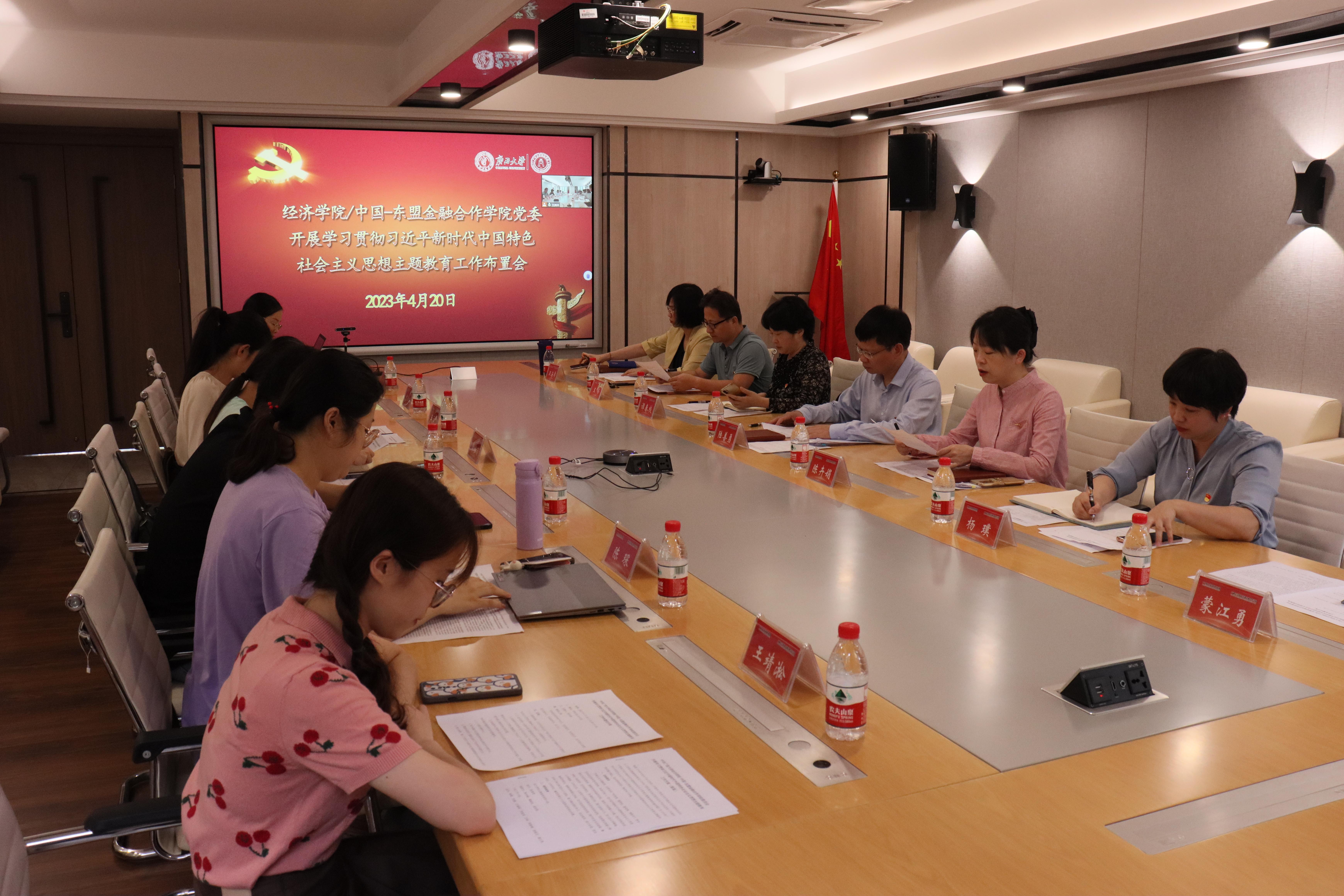 学院党政领导班子成员、党委委员、纪委委员、党员院长助理、党支部书记、专职组织员共18人参加本次会议。与会师生一起讨论确定了《中共beat365手机版官网入口经济学院/中国-东盟金融合作学院委员会开展学习贯彻习近平新时代中国特色社会主义思想主题教育工作方案》,表态一定按照主题教育“学思想、强党性、重实践、建新功”的总要求,坚持学思用贯通、知信行统一,把习近平新时代中国特色社会主义思想转化为坚定理想、锤炼党性和指导实践、推动工作的强大力量,努力在以学铸魂、以学增智、以学正风、以学促干方面取得实实在在的成效。