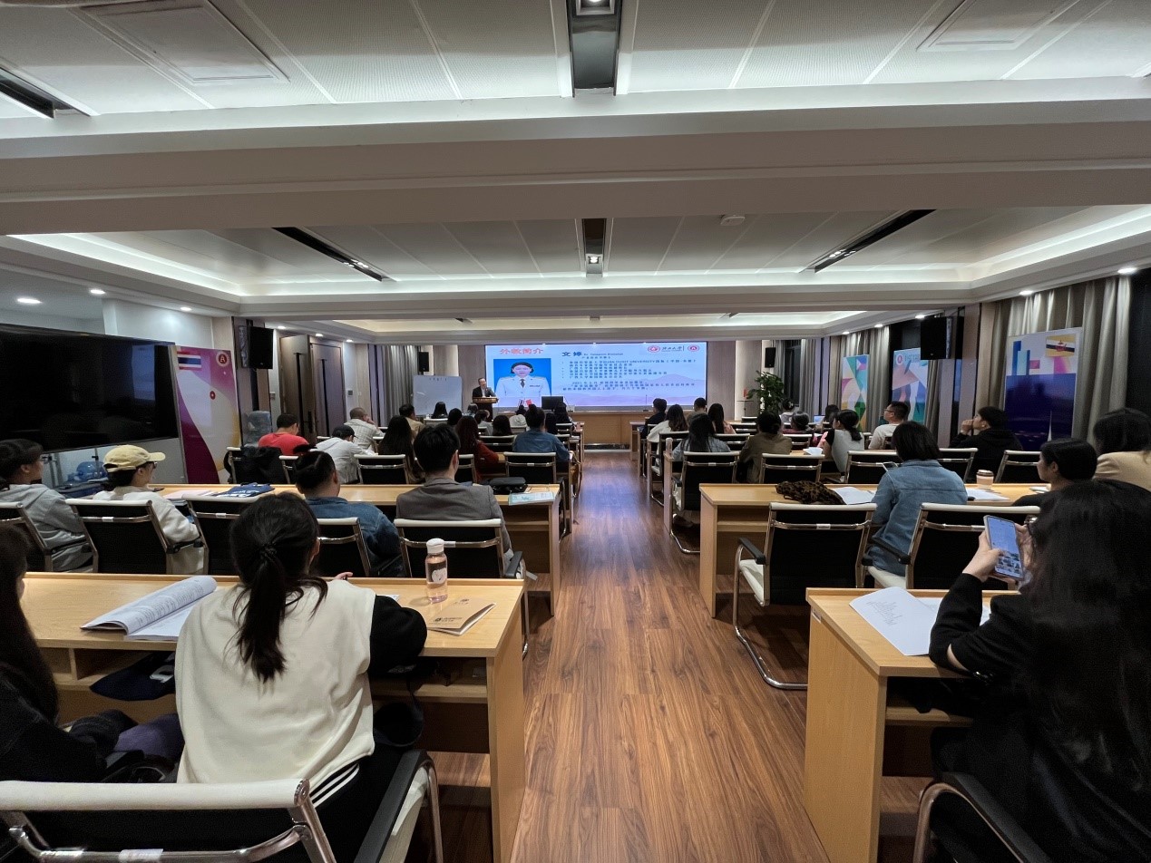学院党委副书记、副院长郭宇路结合自身的东盟工作经历向同学们介绍了泰国国情和社会文化概况,鼓励我院学生认真学好泰语,积极参与中泰两国的友好交流。