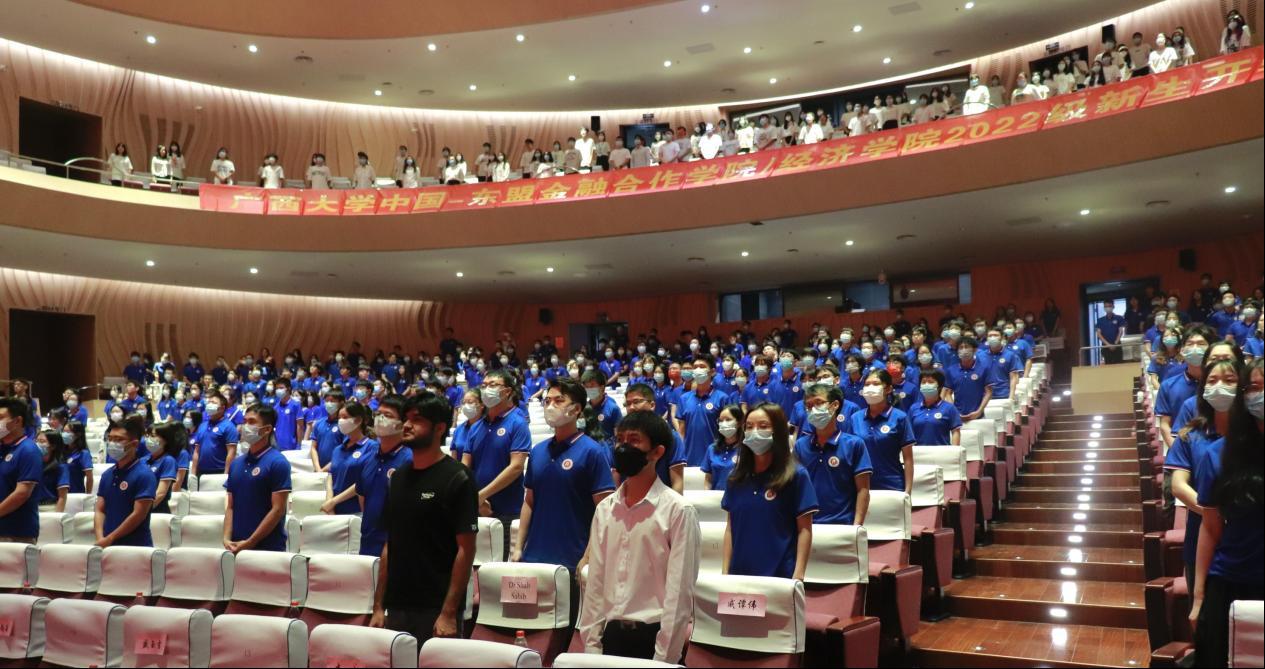 beat365手机版官网入口中国-东盟金融合作学院/经济学院2022级新生开学仪式在全体师生合唱《beat365手机版官网入口校歌》的昂扬旋律中圆满结束。