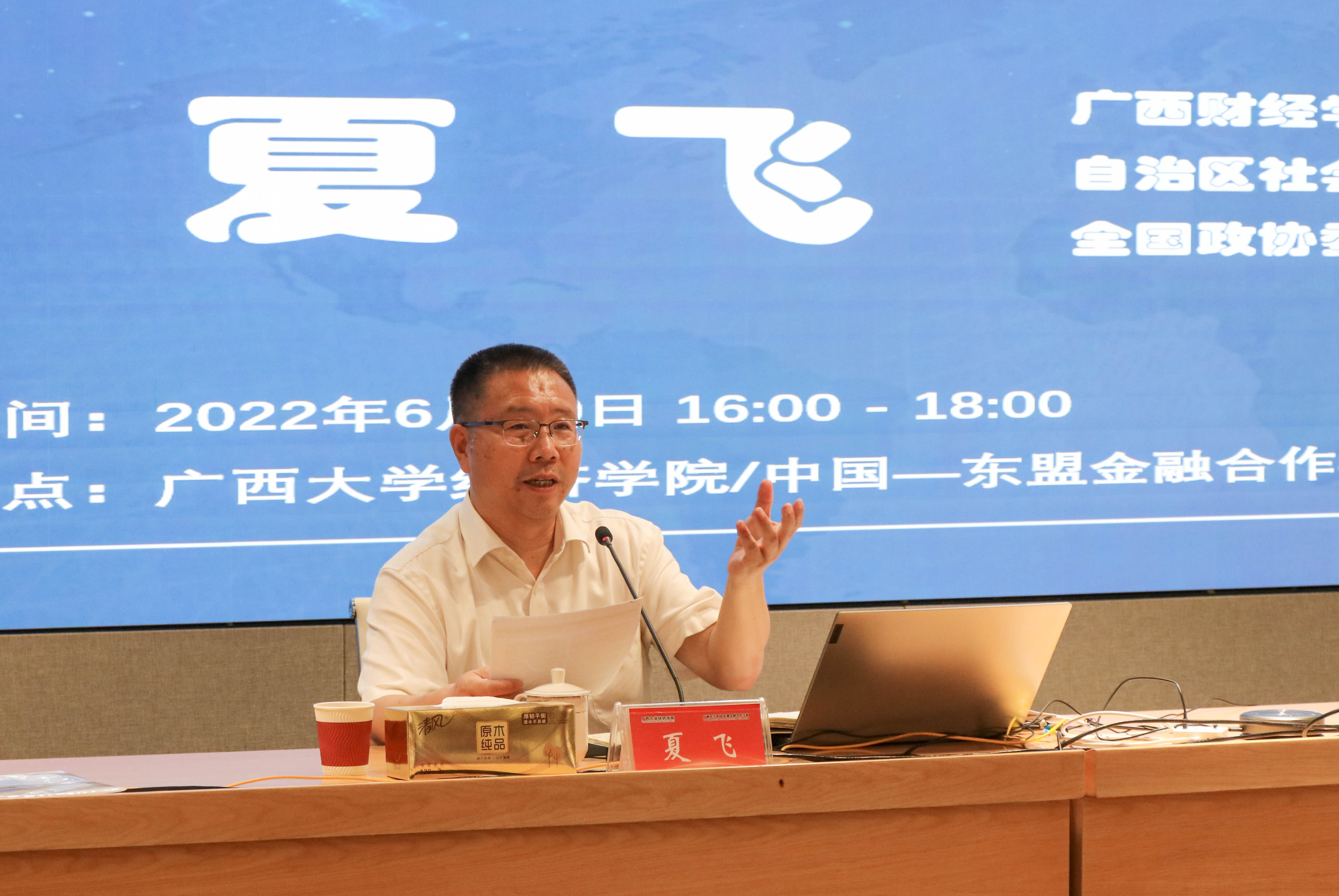 嘉宾简介: 夏飞,博士生导师,广西财经学院校长、民盟广西区委副主委、民盟中央委员、全国政协委员。国家万人计划哲学社会科学领军人才,全国文化名家暨四个一批人才,新世纪百千万人才工程国家级人选,国务院政府特殊津贴专家。主要从事区域经济、产业经济与企业管理研究。主持国家社科基金重大项目多项,在《经济研究》《管理世界》《中国工业经济》等重要学术期刊发表论文60多篇;相关成果获登国家社科基金《成果要报》和新华社《参考清样》等,并获国家领导人和自治区主要领导批示多次。