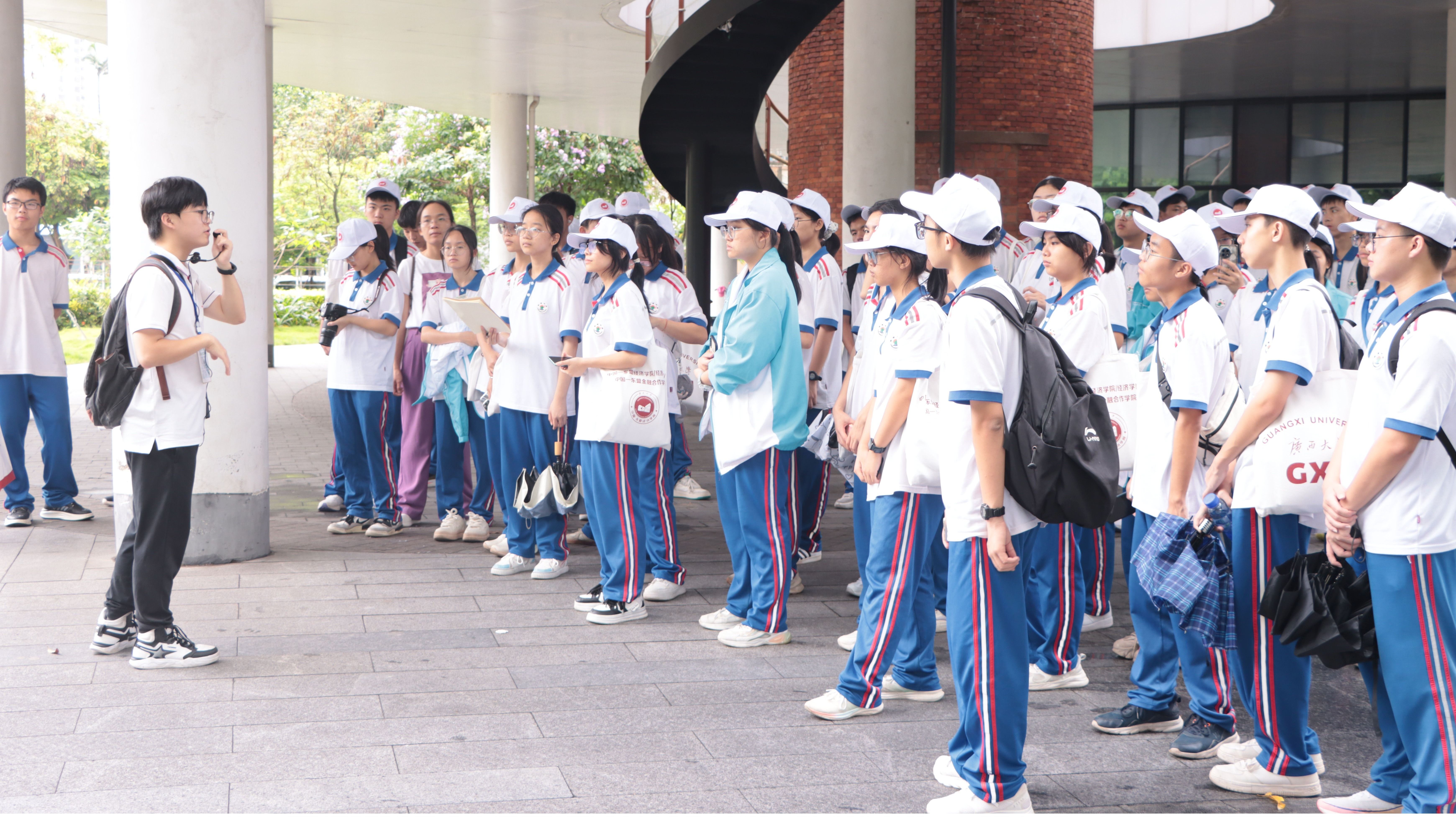 2024年5月19日,扶绥中学校长盛亲来、副校长吴文广一行5名教师及高一56名学生到我校开展“筑梦高校 扬帆未来”主题研学活动。我院党委副书记陈卉娟、副院长梁权熙教授、院长助理陈伟宏副教授、金融与财政系陈新建教授等出席本次活动。