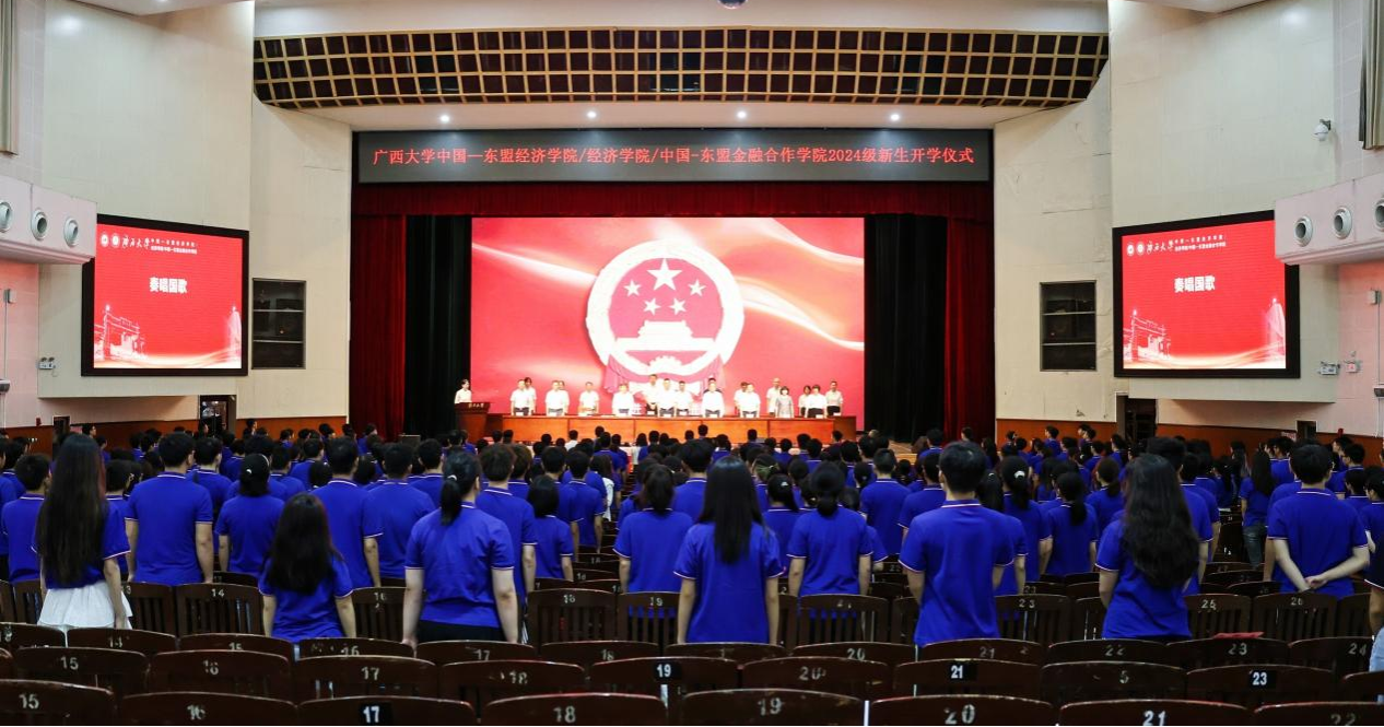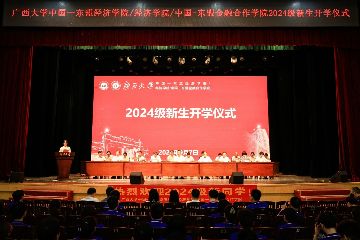 9月7日上午,beat365手机版官网入口beat365手机版官网入口/经济学院/中国—东盟金融合作学院在学校大礼堂为2024级533名新生举行开学仪式,校党委常委、副校长、院党委书记(兼)夏国恩,院党委常务副书记罗诚,院长李光辉,常务副院长梁运文,院党委副书记、纪委书记陈卉娟,副院长谭春枝,副院长梁权熙,副院长杨璞出席仪式,陈卉娟主持仪式。