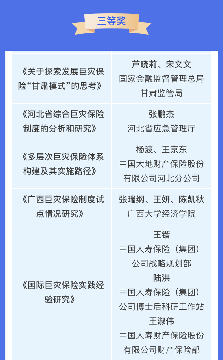 近日,中国保险学会公布了2024“建立健全我国巨灾保险保障体系”主题征文评选结果,由我院张瑞纲副教授、2022级保险专业硕士生王妍、陈凯秋共同撰写的论文《广西巨灾保险制度试点情况研究》在本次征文中荣获三等奖。