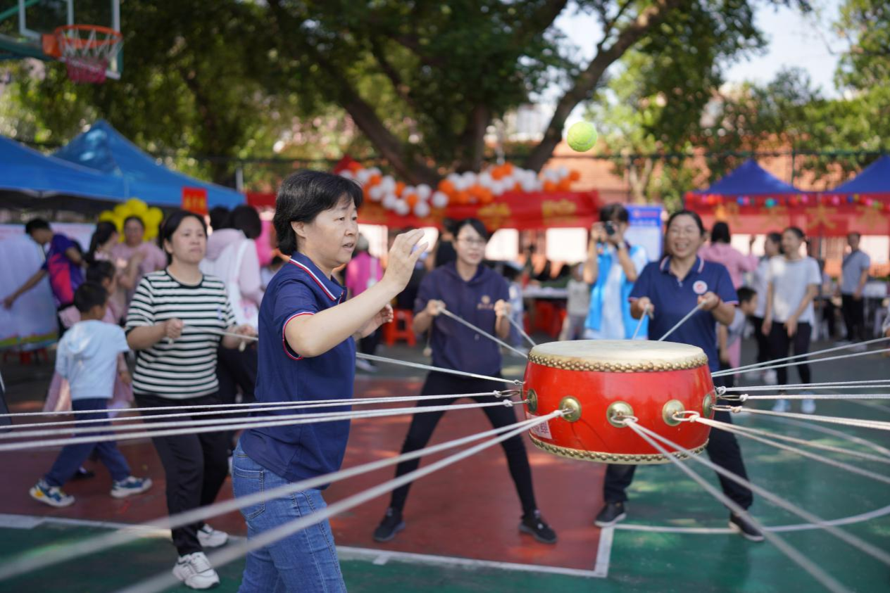 学生组男子击鼓颠球