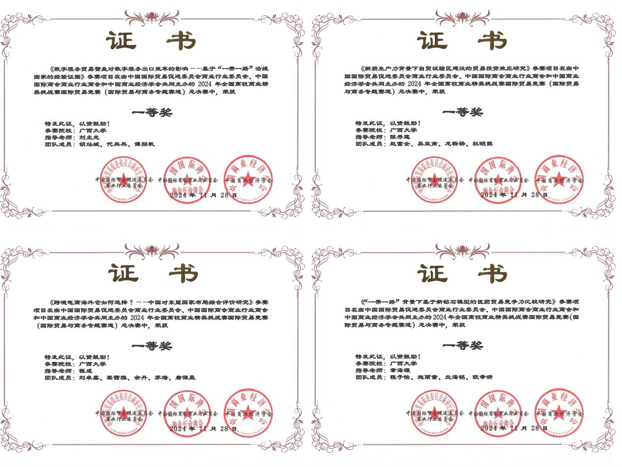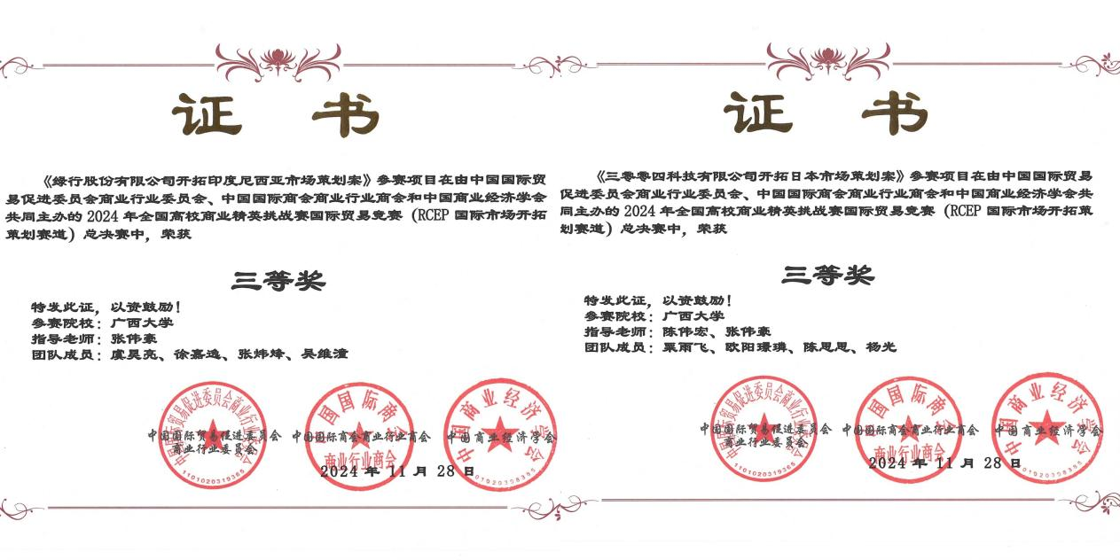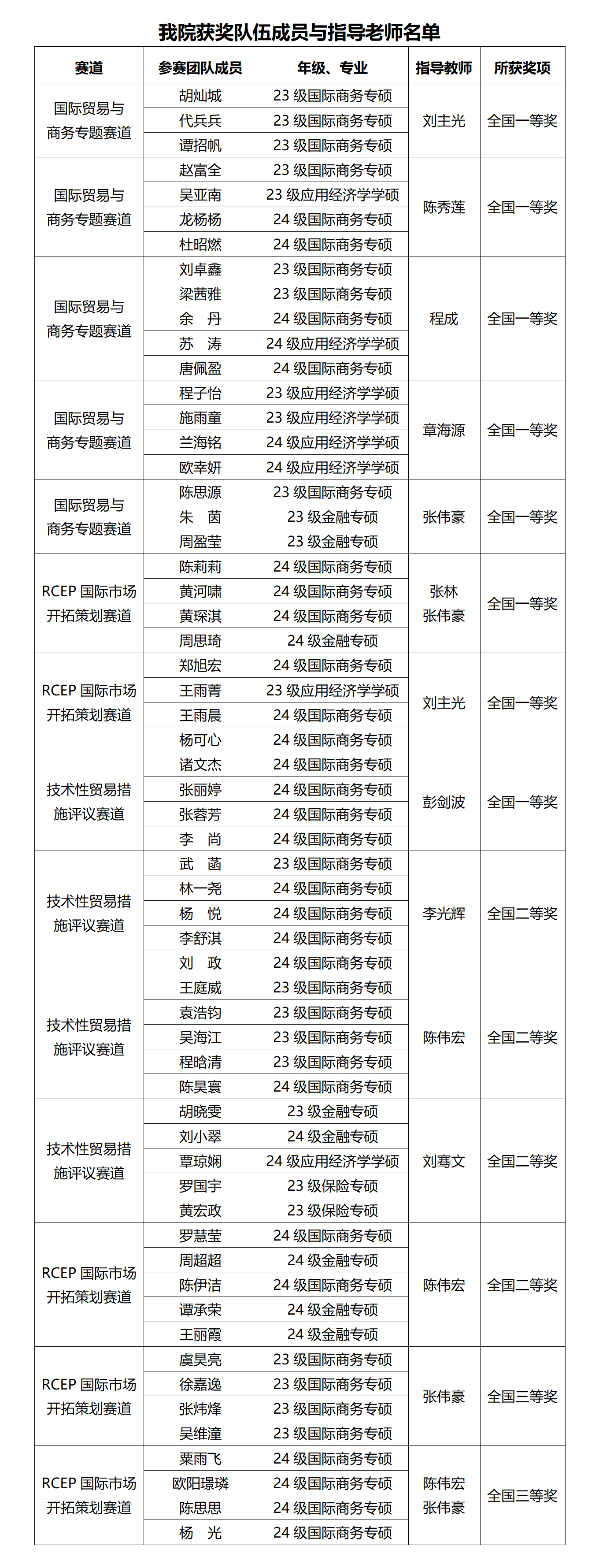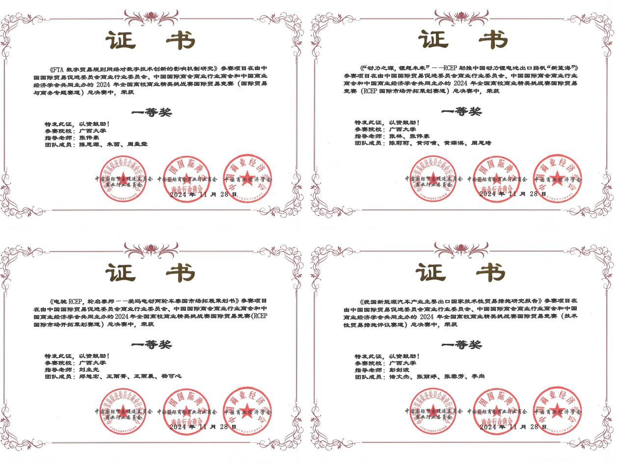 我院一直秉持着“根植广西,辐射东盟”的理念,致力于培育学生在国际经济与贸易领域内的前瞻性创新思维与宽广的全球视野。本次竞赛得到了beat365手机版官网入口“研究生素质能力提升类项目”和学院的大力支持。我院师生们在比赛中取得的卓越成绩,不仅彰显了我院研究生深厚的专业知识功底、出色的实战能力和紧密的团队精神,也充分验证了我院在研究生教学与实践教育方面的显著成就,与学院长期坚持的“以赛促学、以学强赛、赛教融合”的理念及人才培养目标高度契合,标志着我院在培养具有国际竞争力的复合型人才方面又迈出了坚实的一步。