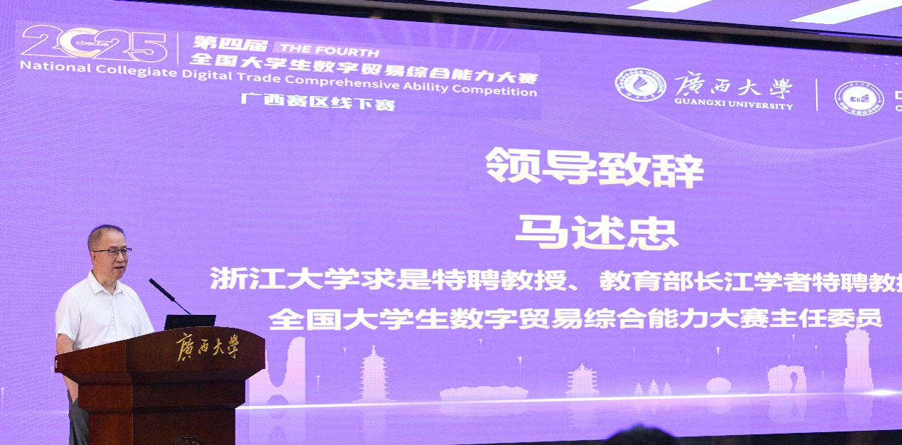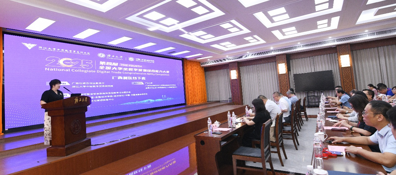 6月15日,第四届全国大学生数字贸易综合能力大赛广西赛区选拔赛在beat365手机版官网入口成功举办,浙江大学中国数字贸易研究院院长、全国大学生数字贸易综合能力大赛主任委员马述忠,浙非服务中心产业人才部主任、全国大学生数字贸易综合能力大赛秘书长易建安,beat365手机版官网入口beat365手机版官网入口党委常务副书记姜玮、副院长公正等出席开幕式。开幕式由beat365手机版官网入口beat365手机版官网入口副院长杨璞主持。