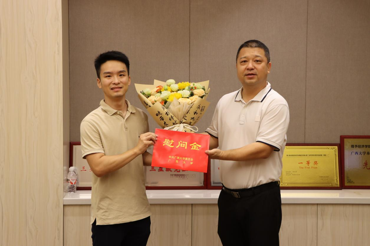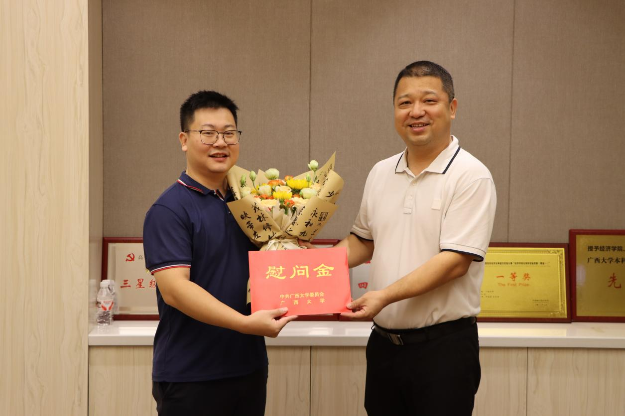 学院党委常务副书记姜玮向章海源、刘骞文、张伟豪三位老师献花