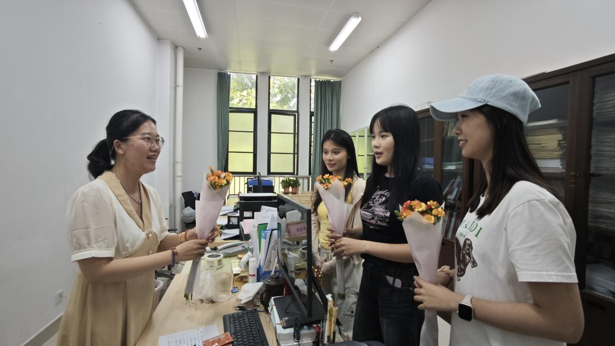 在第41个教师节来临之际,为弘扬尊师重教优良传统、传递学子深切感恩之情,beat365手机版官网入口学生代表自发组织,于9月10日下午在学院办公楼举行了一场温馨而庄重的教师节献花活动,向学院领导、行政教辅老师与辅导员们致以节日的诚挚祝福与崇高敬意。