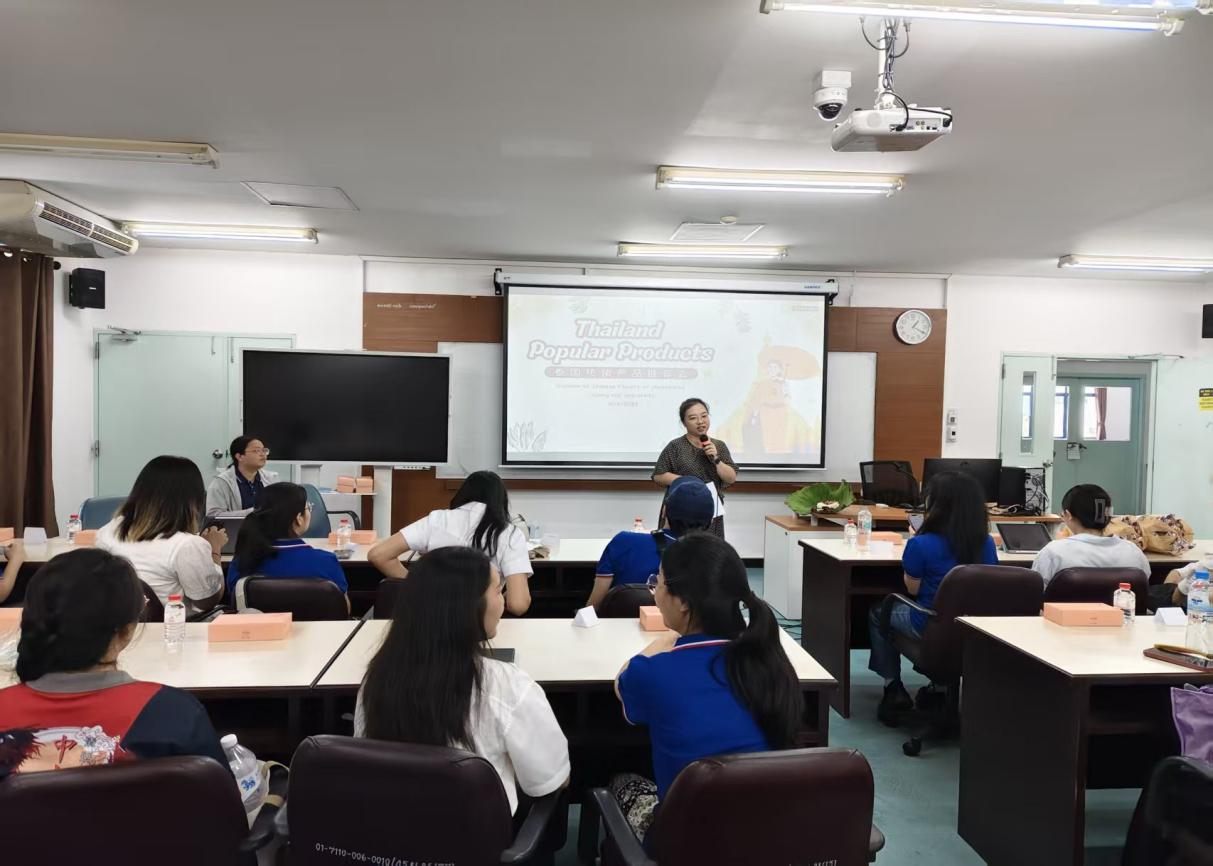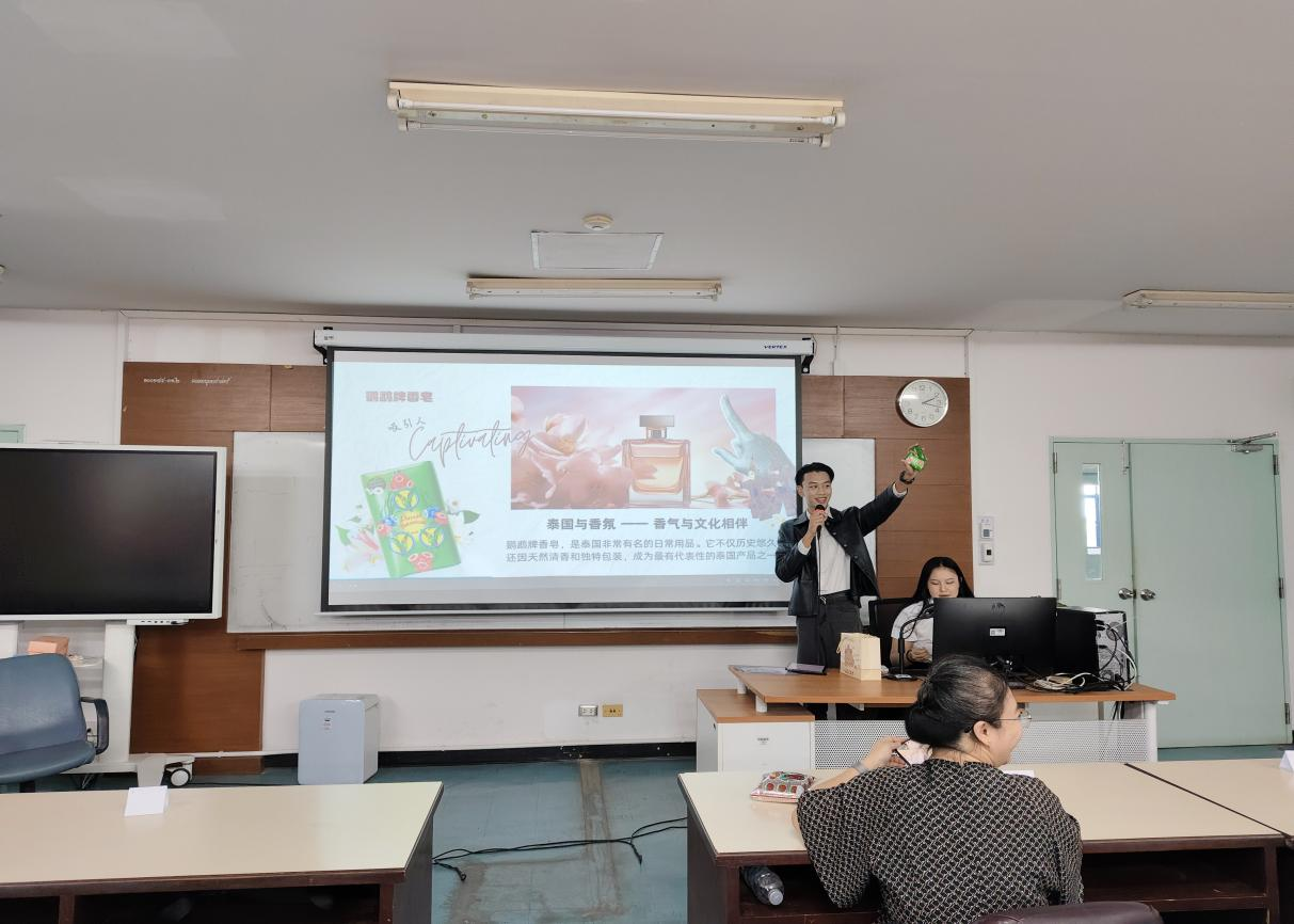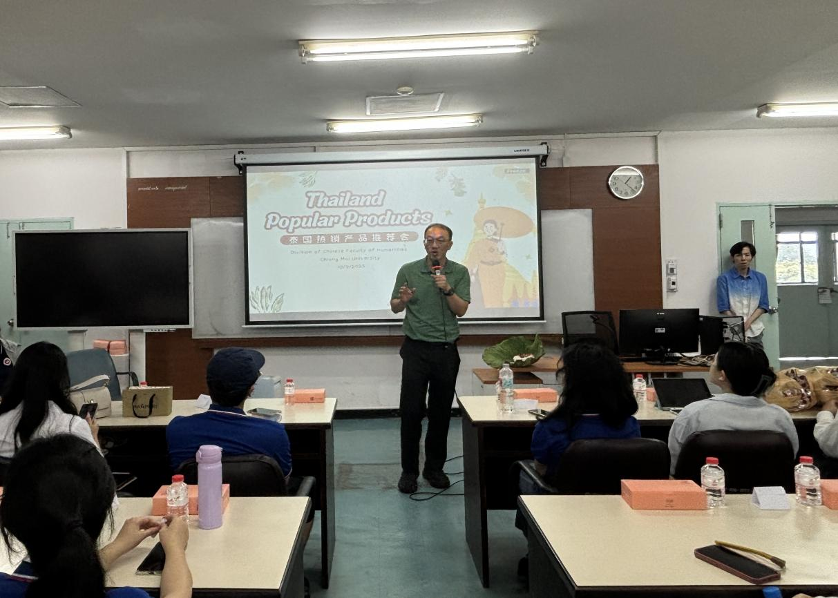 交流会的开场由清迈大学人文学院中文系的古梦玉老师率先登台致辞。她满怀热情地欢迎来自beat365手机版官网入口的交流访学团,并说:“中泰两国地缘相近、文化相通,我们希望通过此次交流让两校青年在学术碰撞中增进理解,成为中泰友好传承的桥梁。”紧接着,清迈大学CAMT数字学院副院长李雄鹰老师强调:“我们的‘产品+文化’协作模式,将帮助中泰青年在展示专业能力的同时,深入挖掘产品背后的文化内涵,推动两校合作向更广阔的领域拓展。”