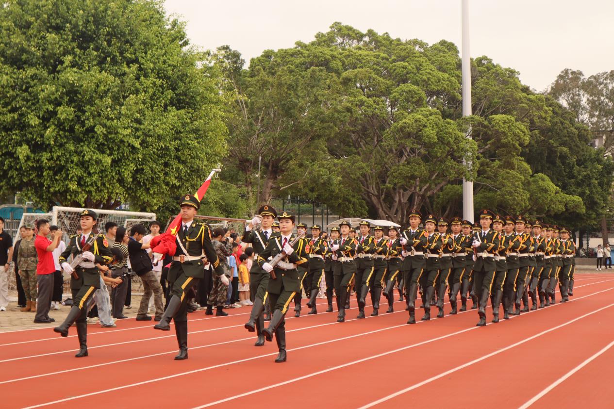 田径场上,学院领导、教师代表与学生党员、团学骨干、入党积极分子整齐列阵。他们神情庄重,目光坚定,在晨曦中等候那个神圣时刻。这静默的肃立,是情感的凝聚,更是力量的蓄积,展现了学院全体师生与国家民族同呼吸、共命运的精神风貌。