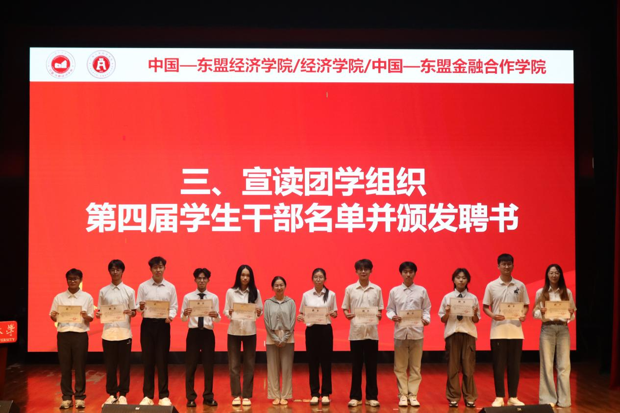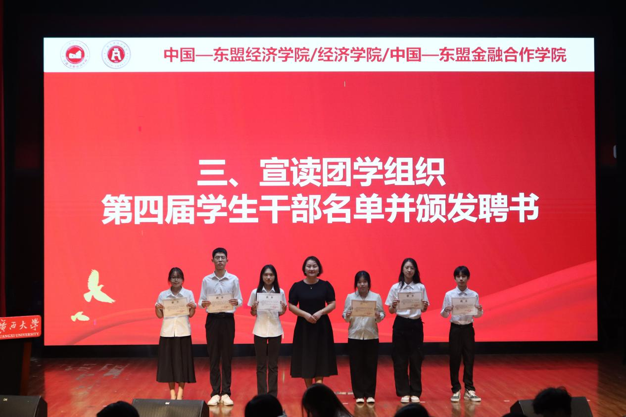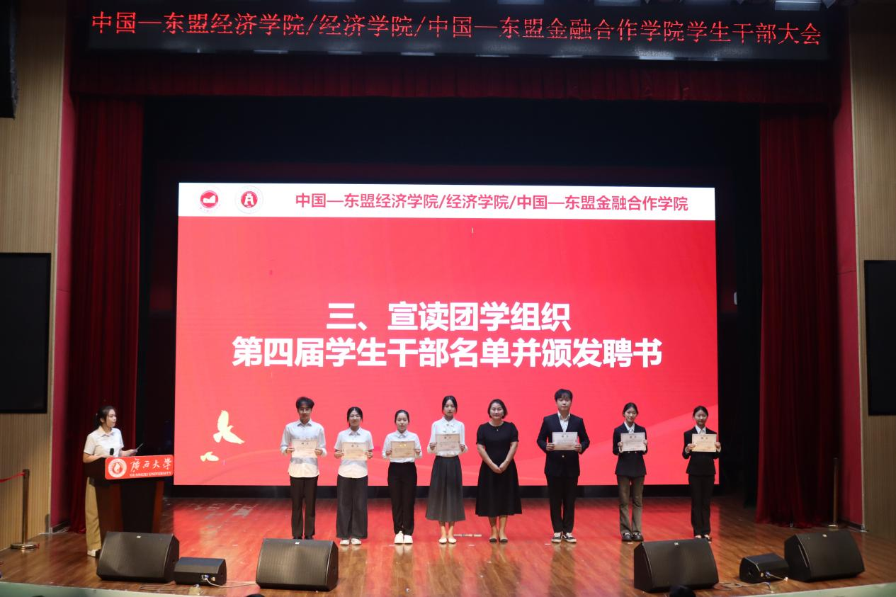大会在庄严的国歌声中拉开帷幕。学院领导为上一届学生干部颁发荣誉聘书,充分肯定他们过去一年的辛勤付出与卓越贡献。随后,王海希老师宣读新一届团学组织成员名单,新鲜血液的注入为学生工作带来新的活力。