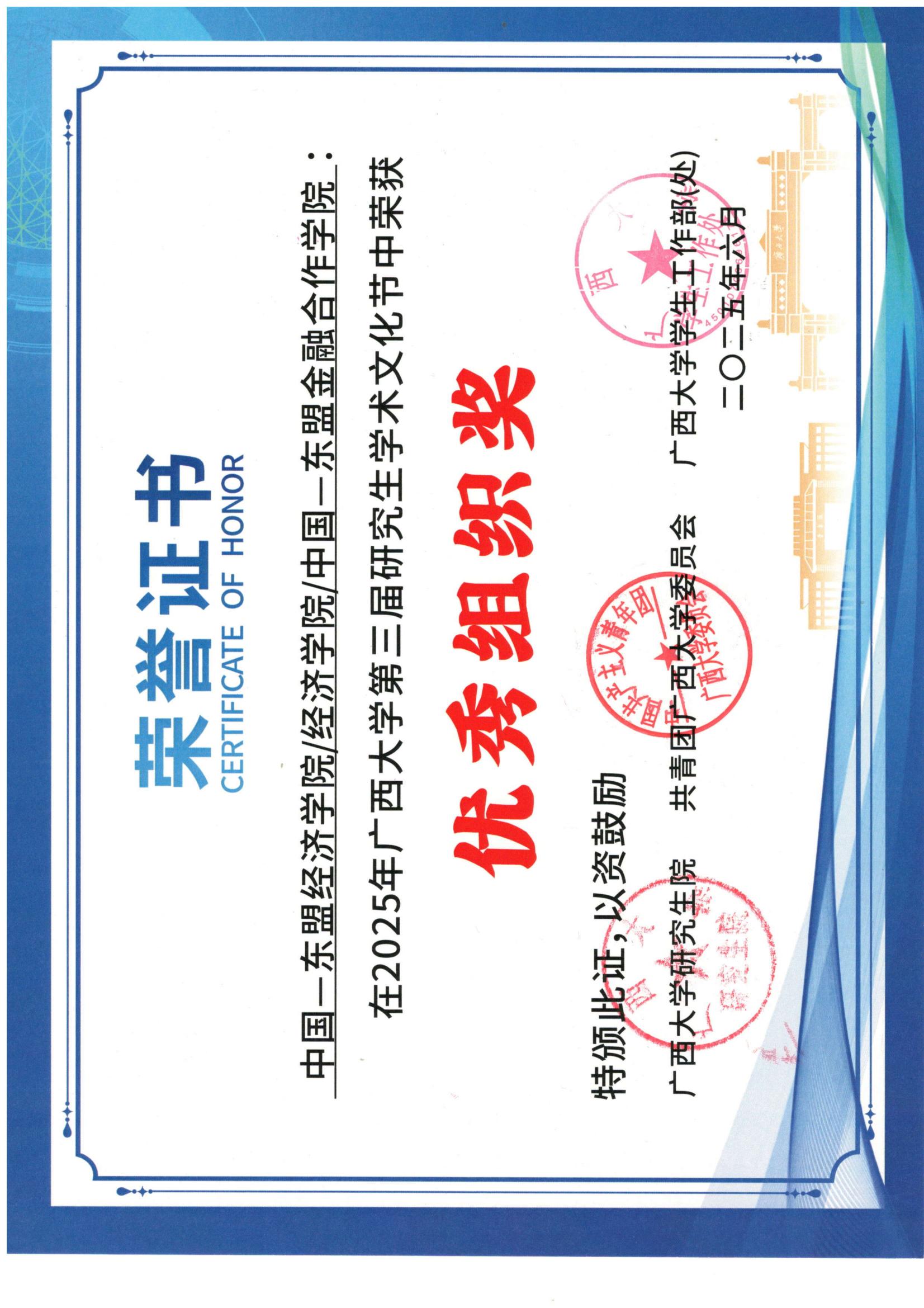 2025年6月我院获beat365手机版官网入口第三届研究生学术文化节优秀组织奖