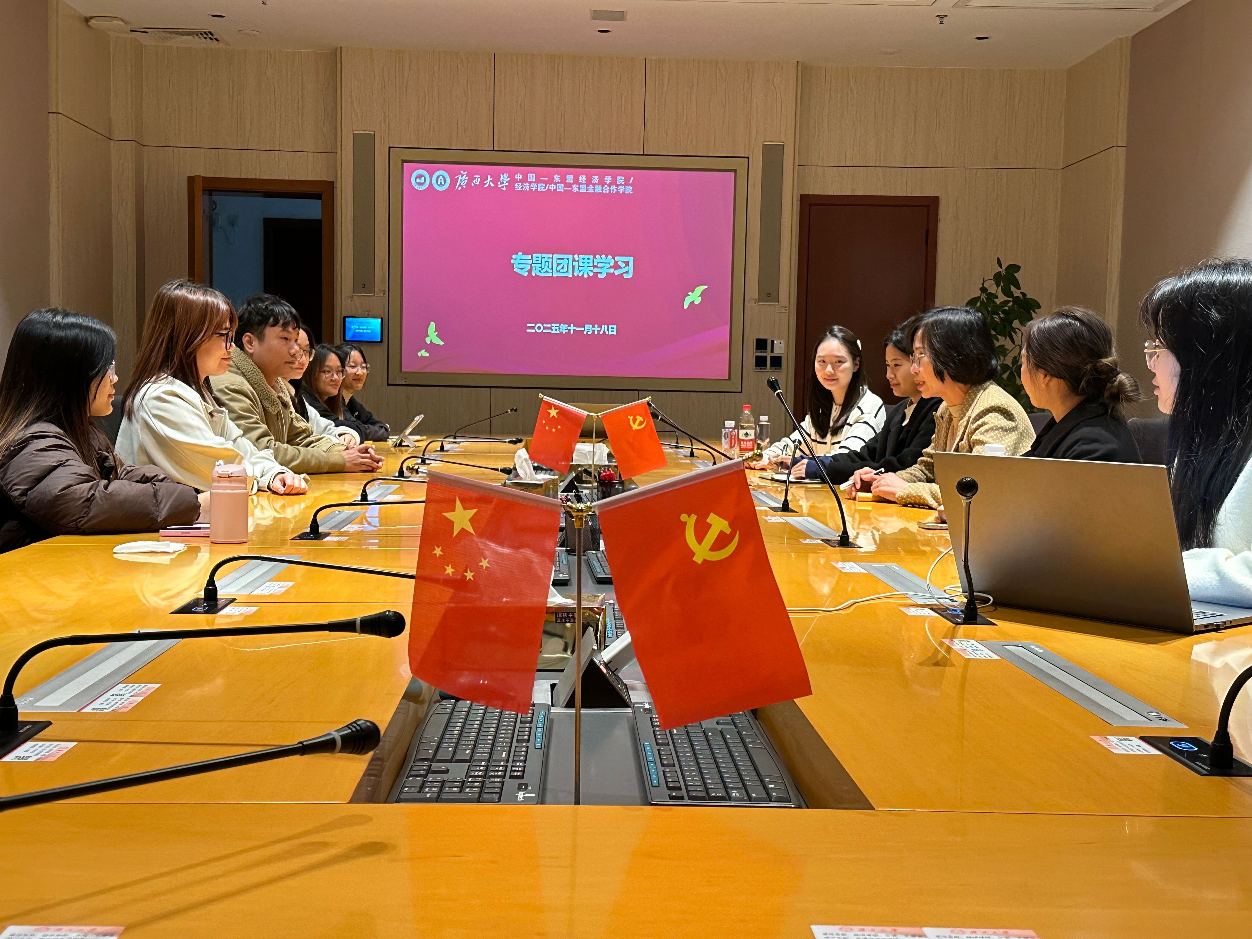 2021年5月时任共青团广西区委副书记廖长友出席我院2020级金融专硕第一团支部、第二团支部主题团日活动
