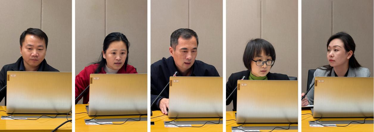 从左到右依次为金融与财政教师党支部、经济与国际贸易教师党支部、边疆经济与区域国别教师党支部、教工行政党支部、中国—东盟研究院/广西创新发展研究院党支部