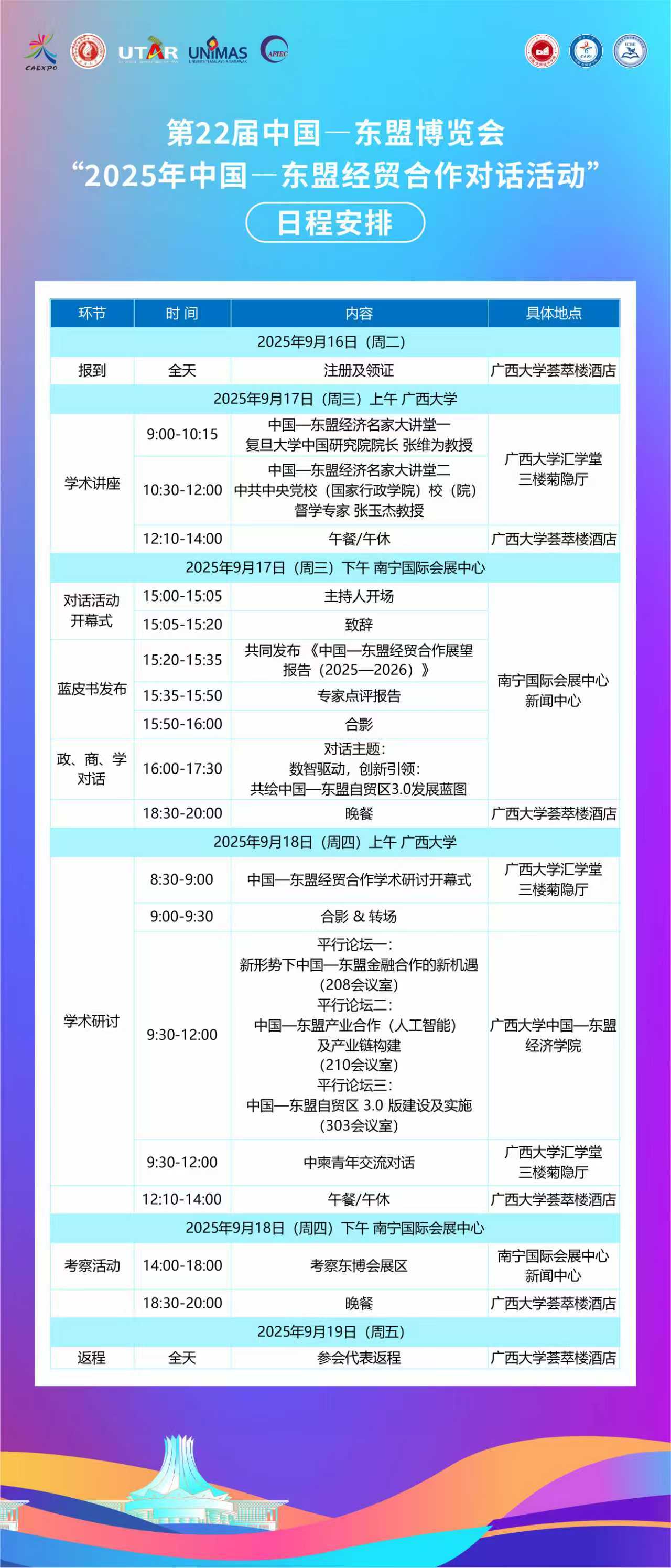第22届中国—东盟博览会“2025年中国—东盟经贸合作对话活动”日程安排