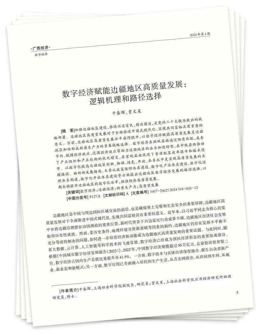 [关键词]数字经济;边疆经济;新质生产力;高质量发展