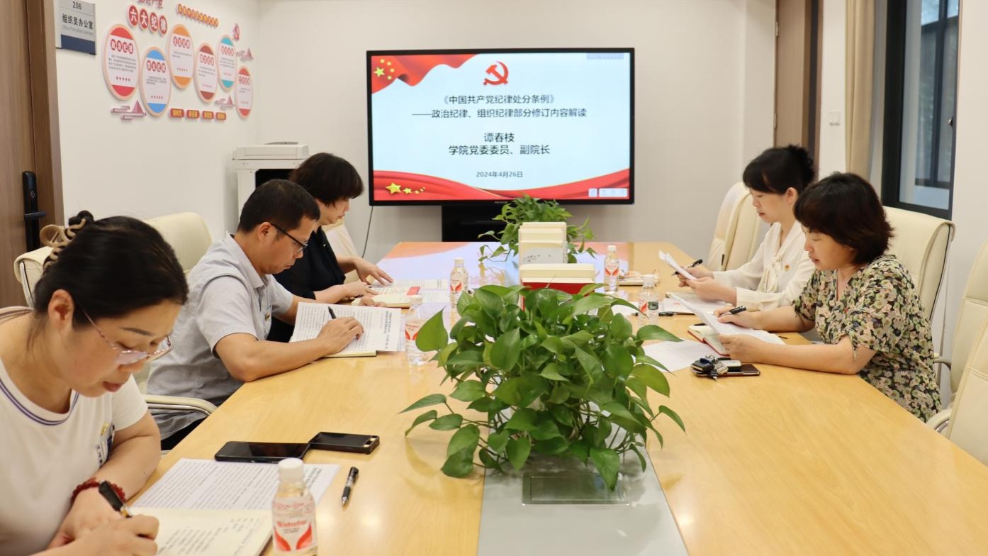 读书班结束之后,党委领导班子成员及理论学习中心组成员进行了党纪学习教育专题研讨。院党委纪检委员、副院长谭春枝分享了两篇关于政治纪律、组织纪律部分修订内容的权威解读,其他党委委员、理论学习中心组成员围绕政治纪律、组织纪律进行了交流研讨,加深了大家对所修订内容的认识和理解。